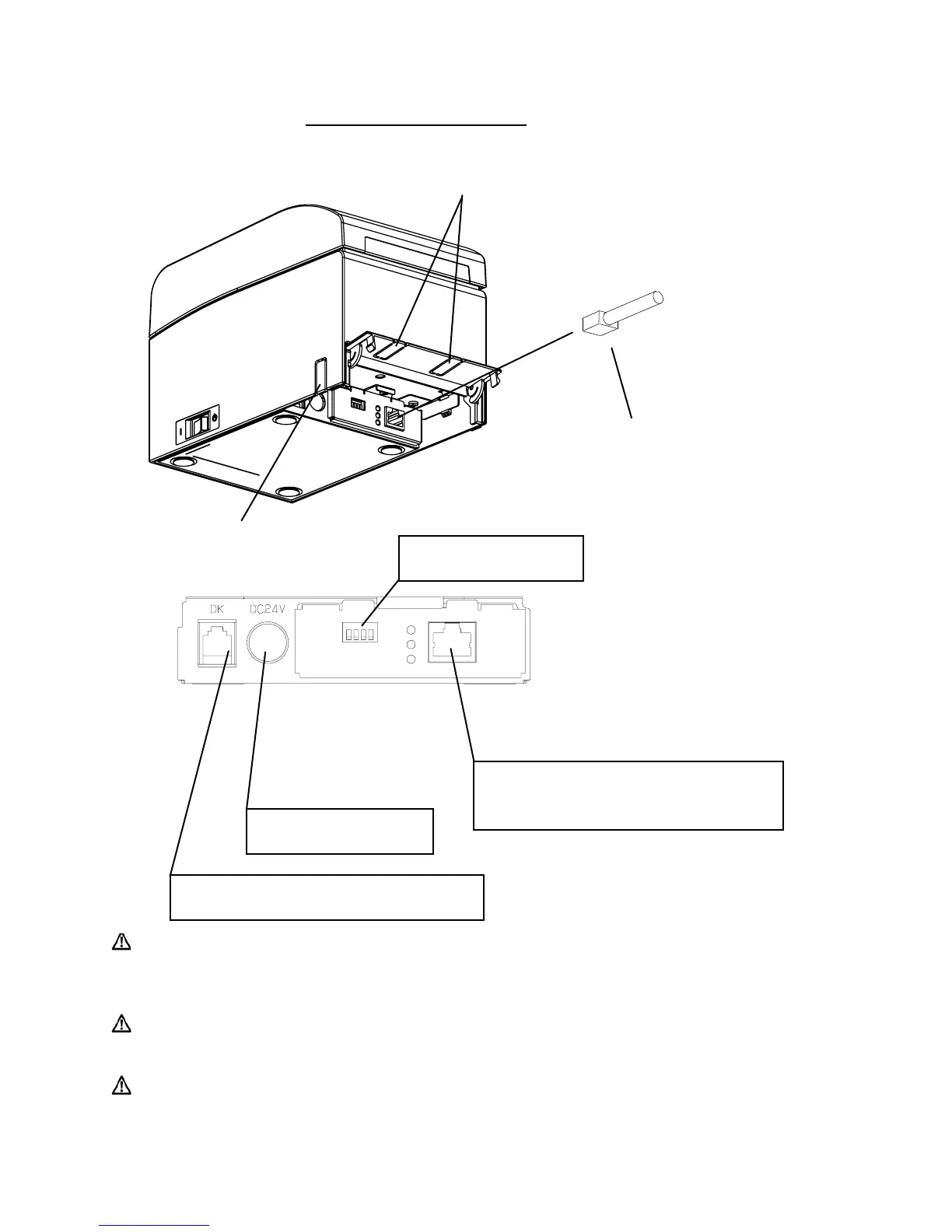 Vorsicht: Bei senkrechter Aufstellung des Druckers kann sich das LAN-Kabel
