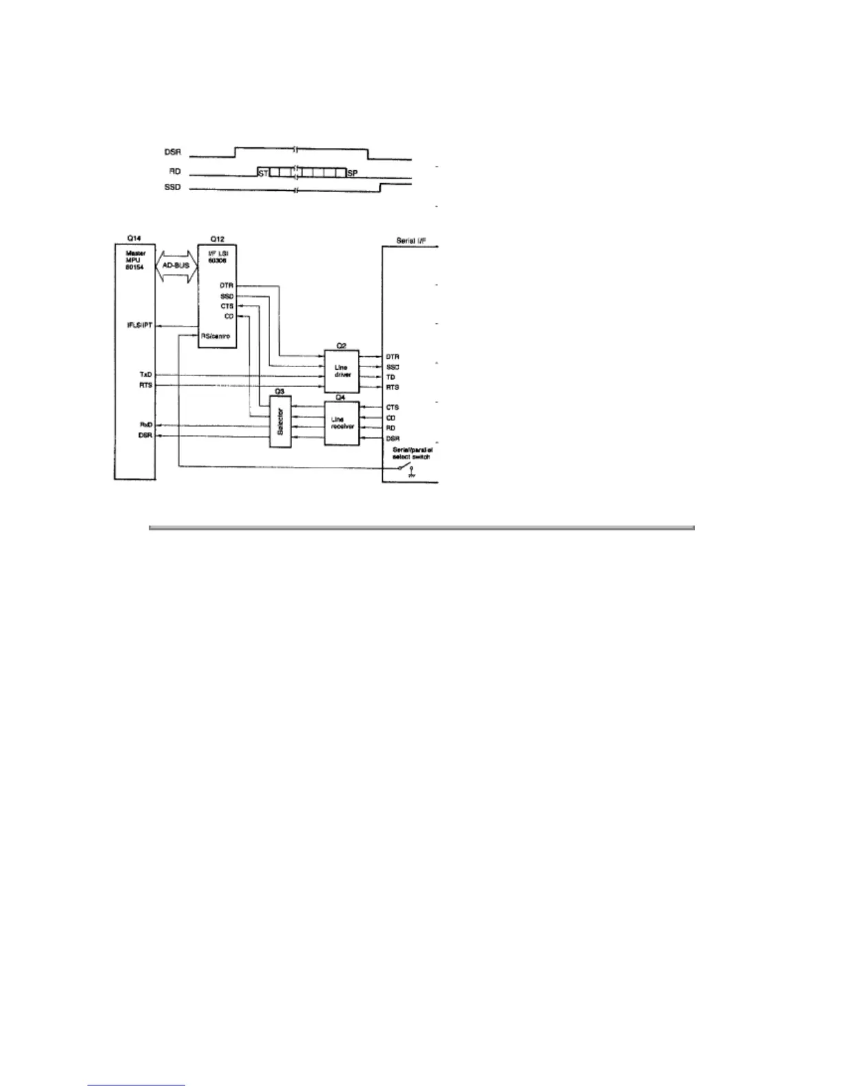 converted from TTL levels to RS232-C levels by the line driver (Q2) and sent to the serial interface