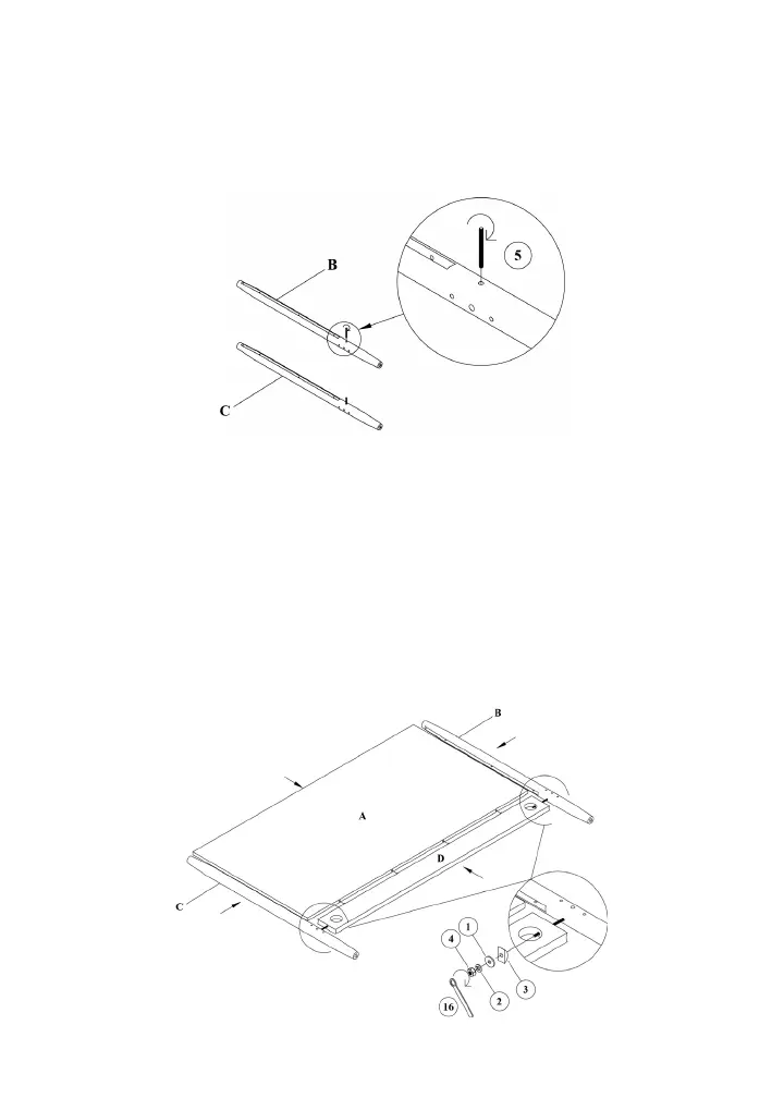 • Insert the Allen Wrench (5) to the Right Leg (B) and Left Leg (C) as