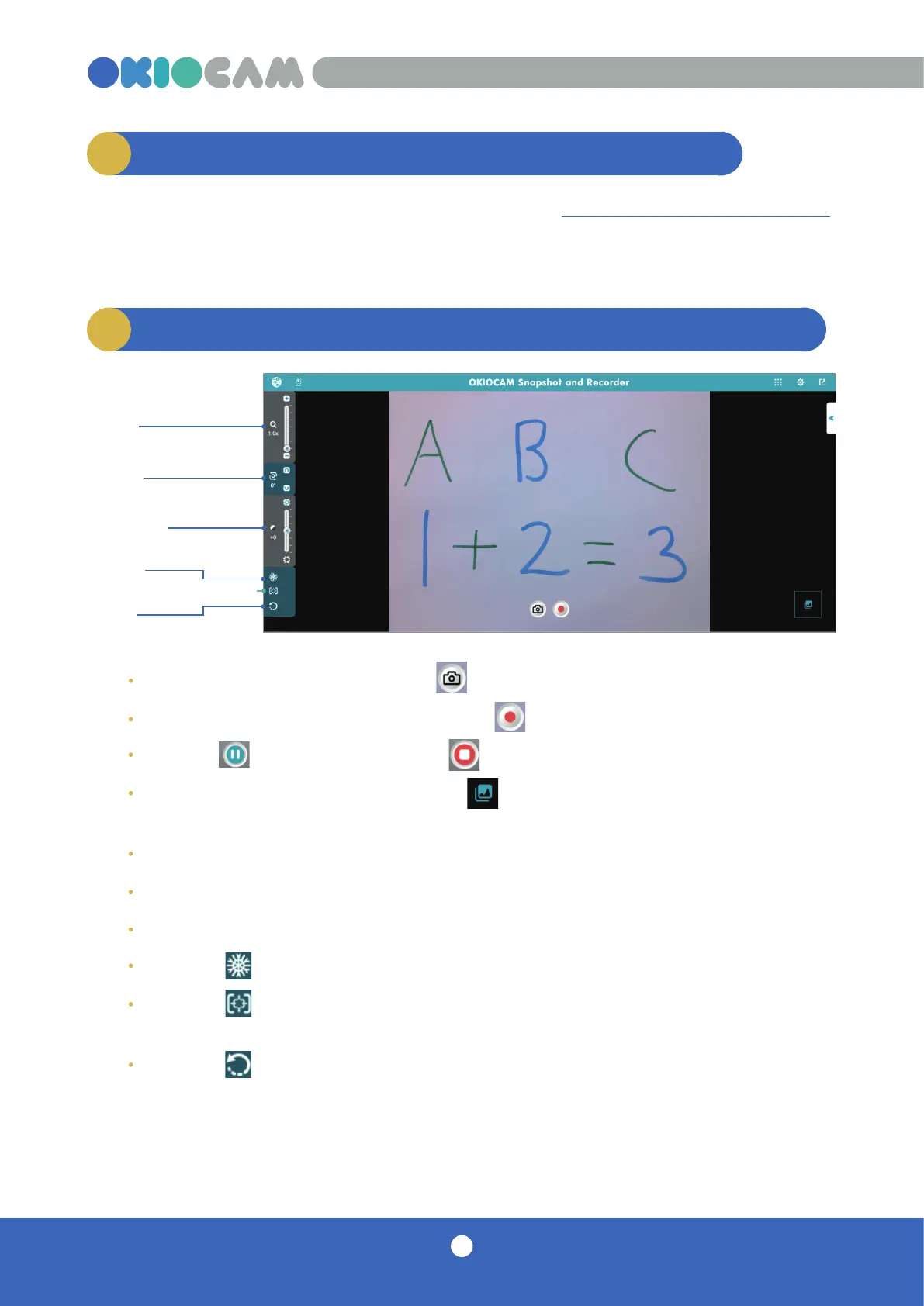 You can use Snapshot and Recorder to take snapshots and videos with your OKIOCAM.