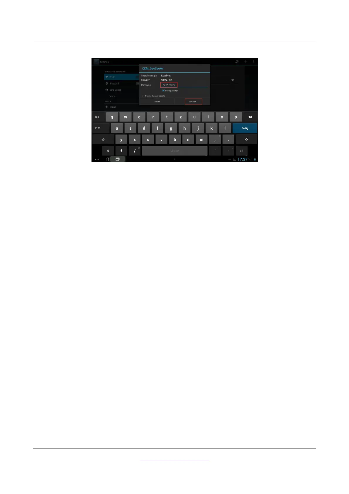OKM FS Future Series - Figure 6.7: Entering Wi-Fi Password