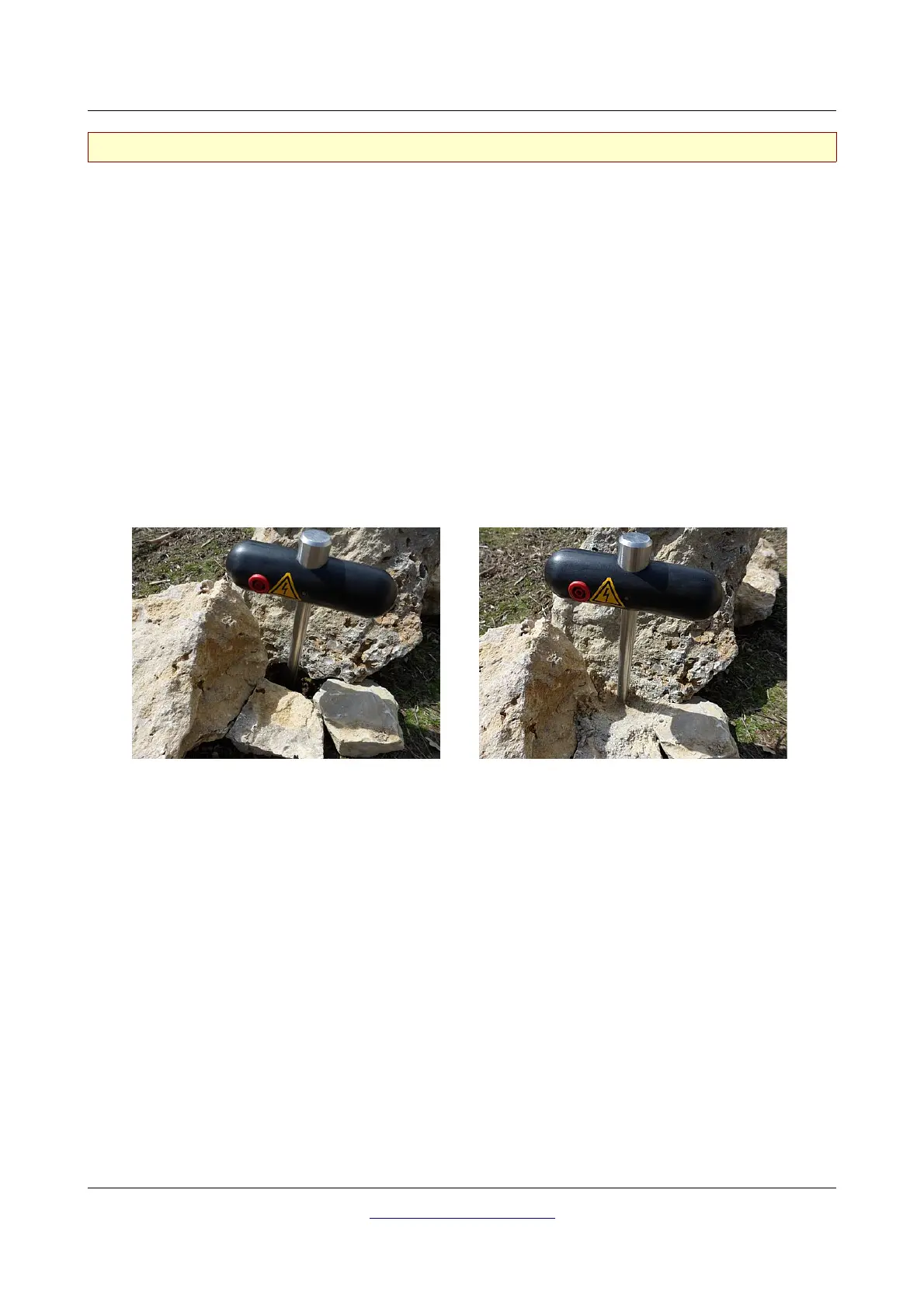 Sometimes it is not possible to push the electrodes into the ground with bare hands. Then you should