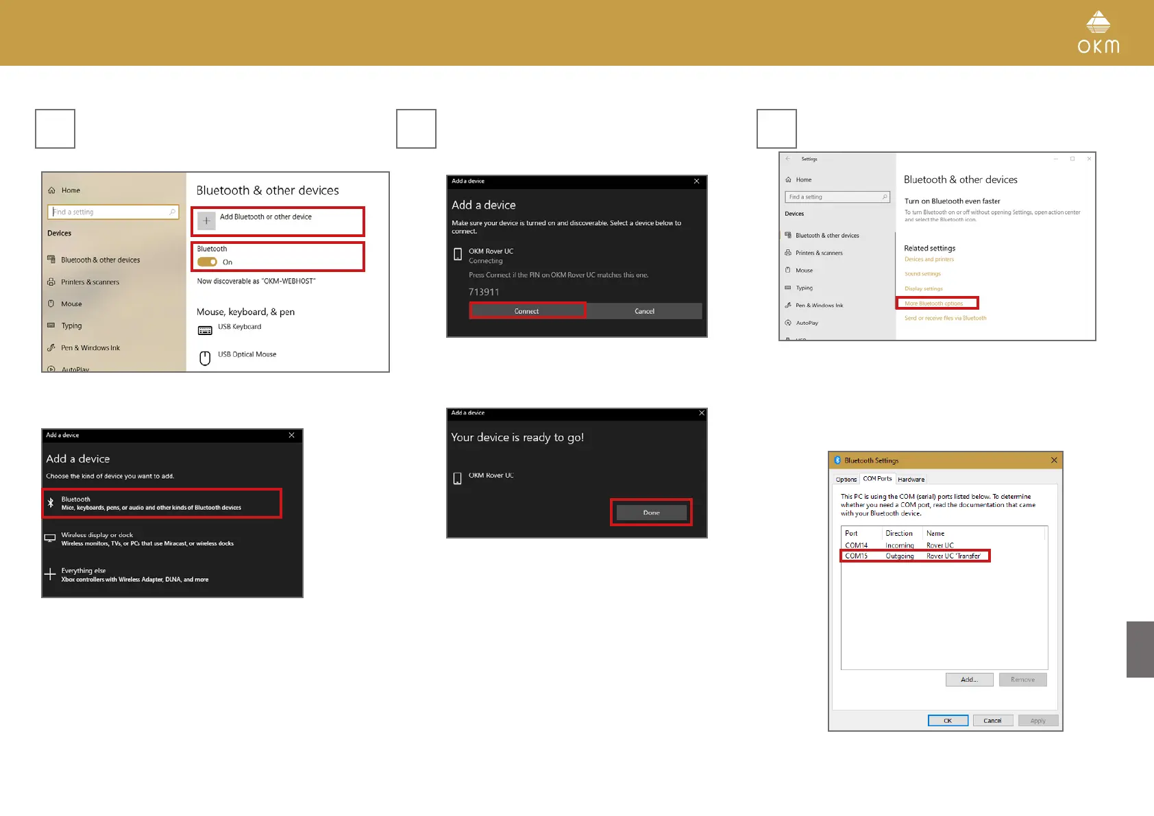 Bluetooth and OKM Rover UC. In order to connect,