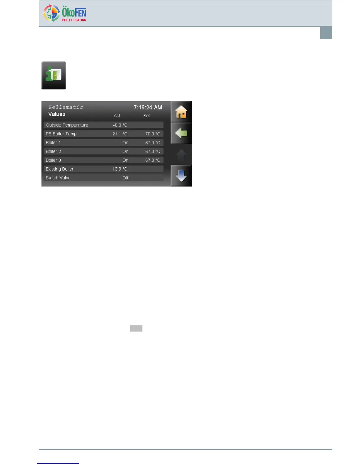 Displaystheactualstatusoftheboiler.