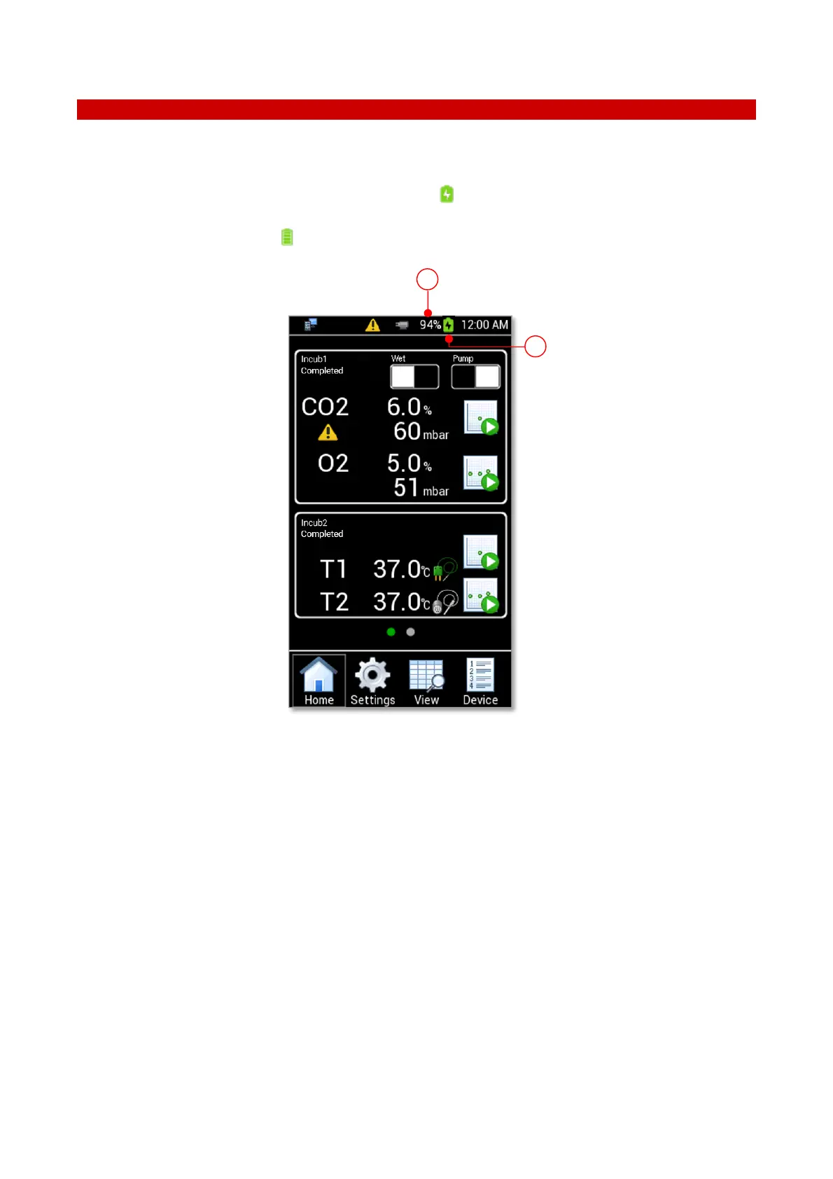 17). The percentage of battery charge shows besides the battery symbol (2 in Figure 17). When charging is