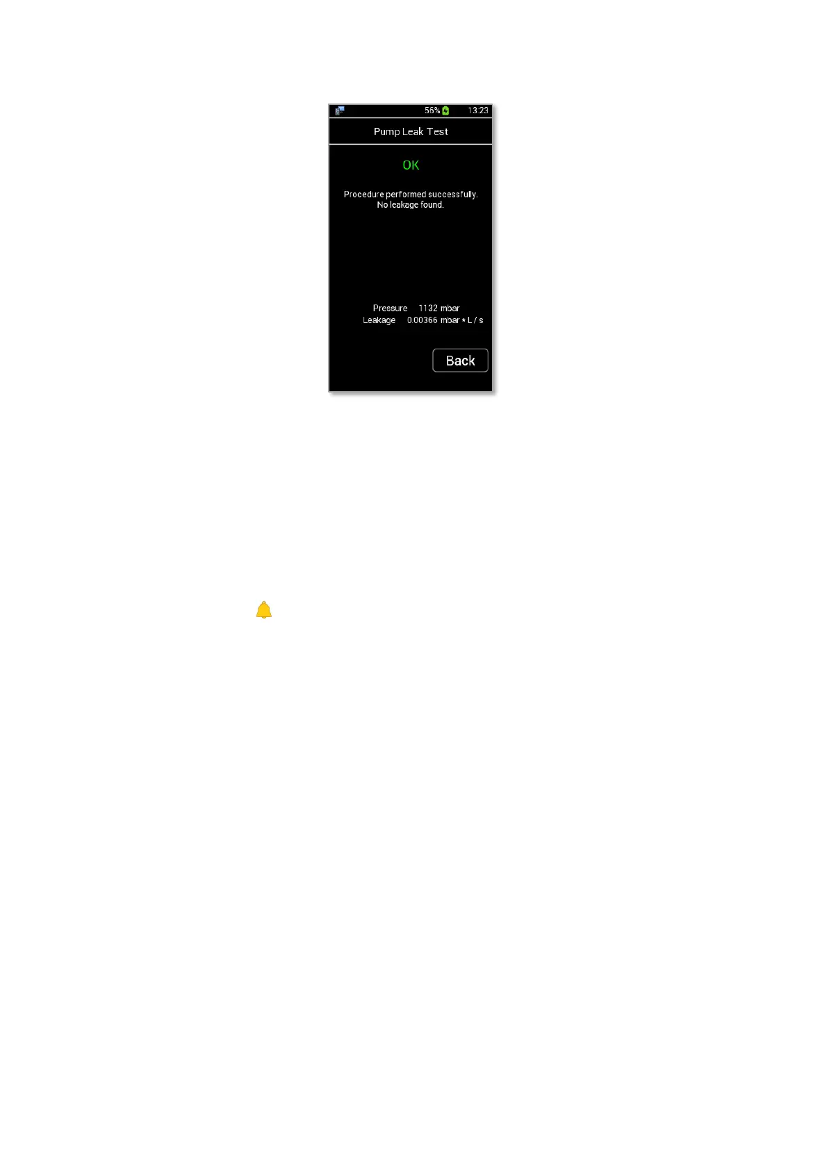 If the Leak test failed, a leakage in the pump is present and a red label showing FAILED appears. Make sure