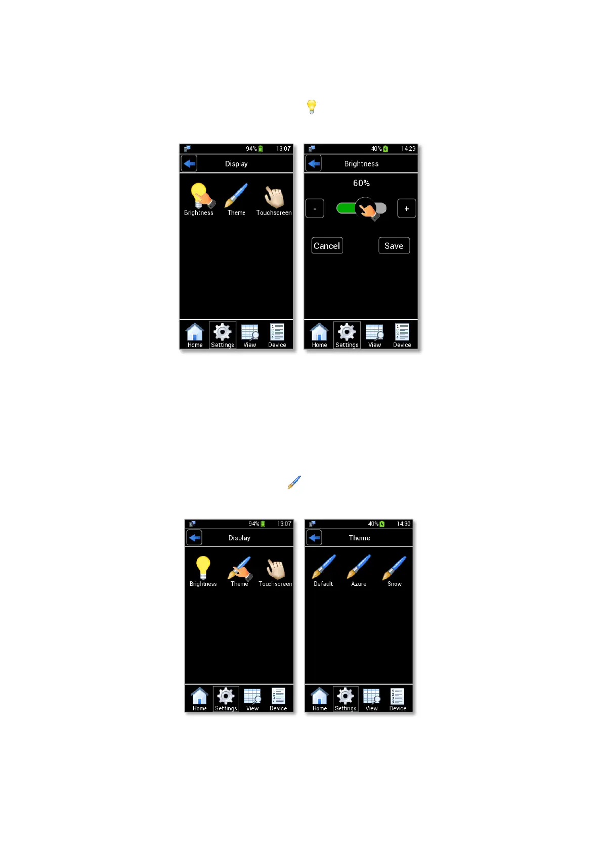 To modify the display Brightness, press the icon (see Figure 40 a) and use the slide bar displayed or