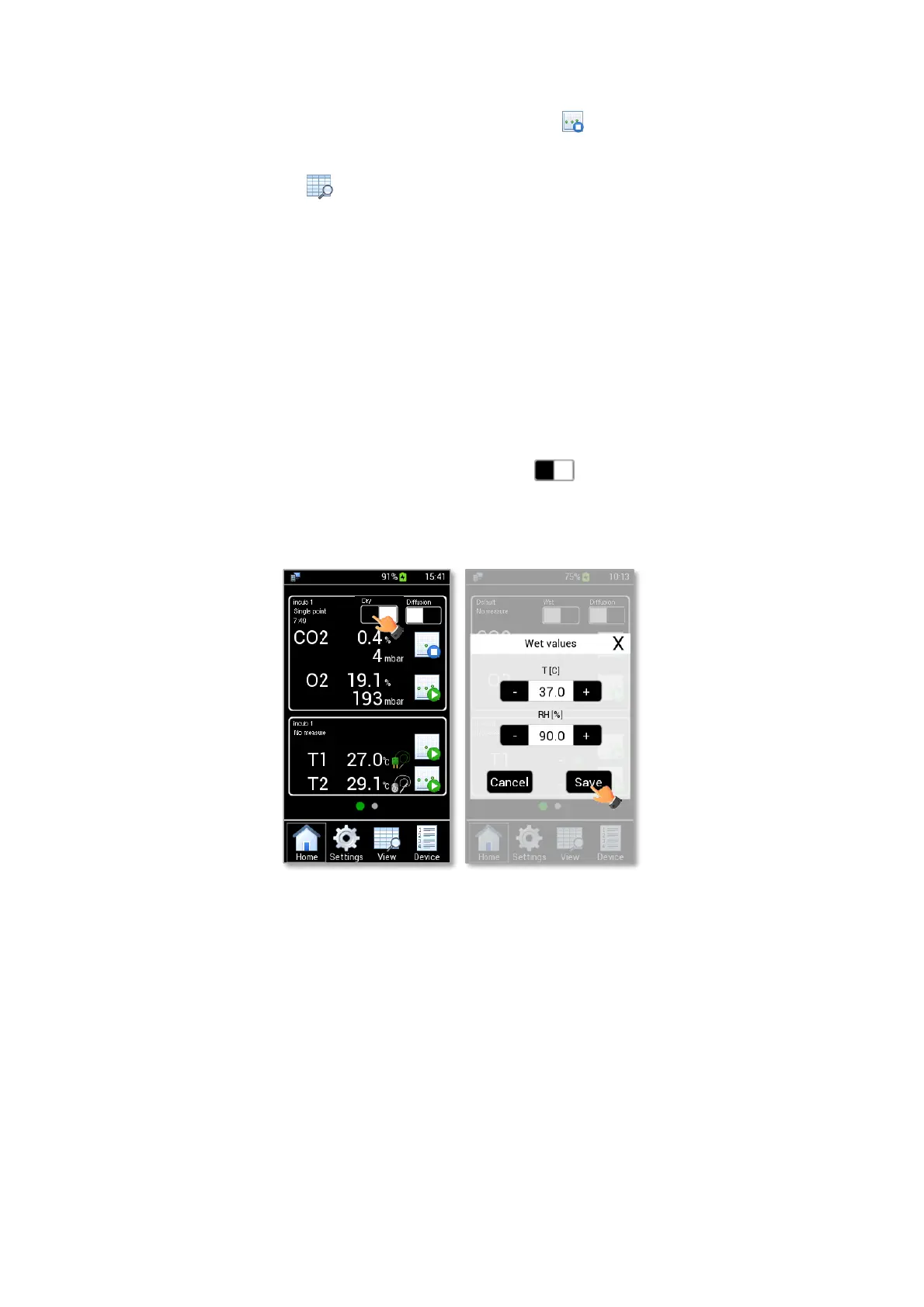 The Wet Mode is a LEO feature allowing you to set the incubator temperature and relative humidity values.