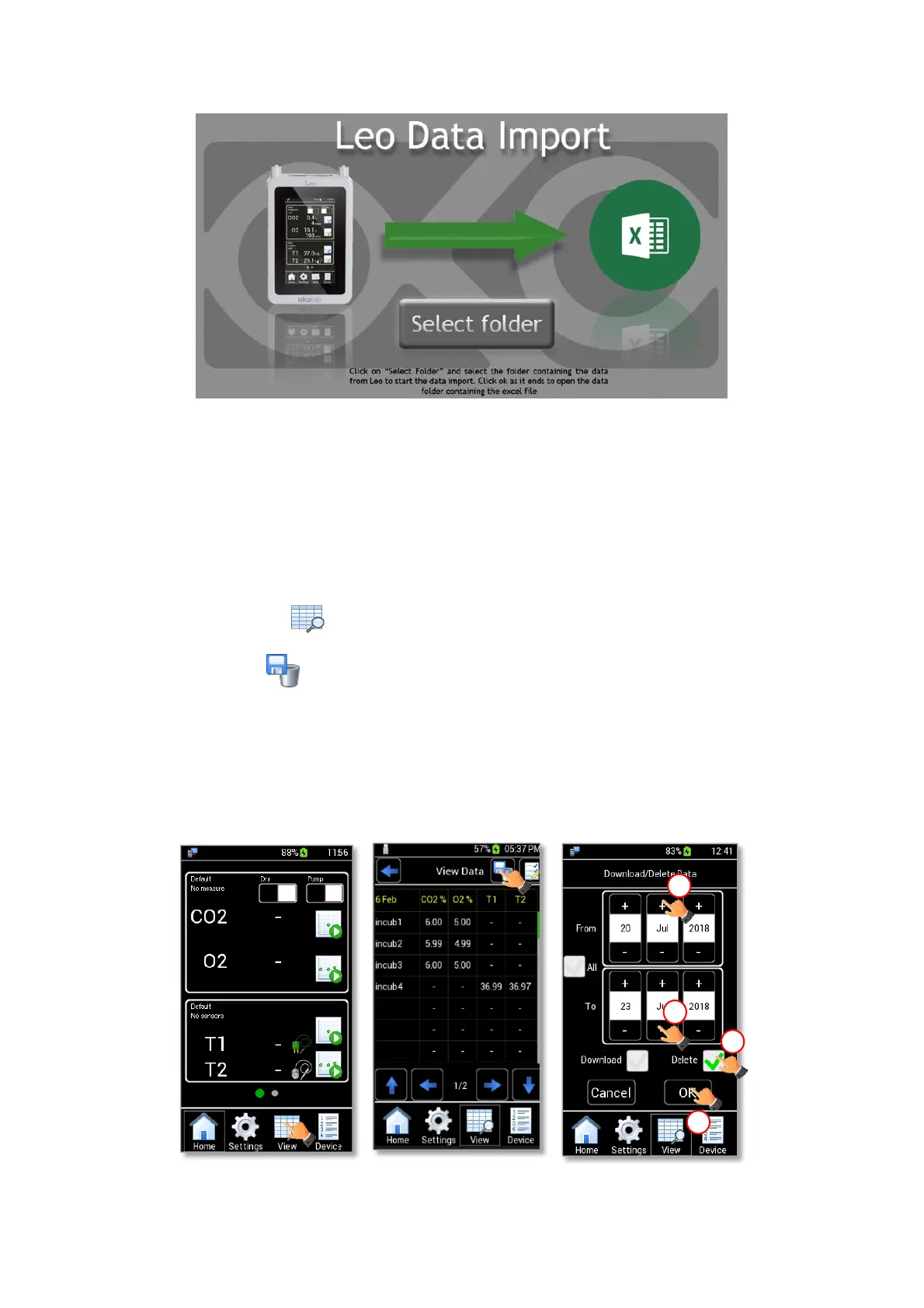 2. Press the icon (see Figure 70 b) to access the Download/Delete page.