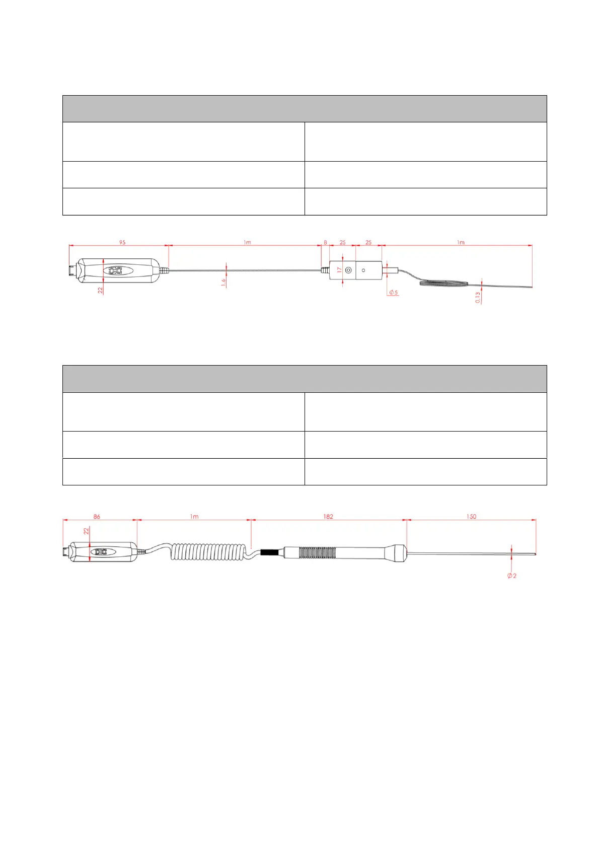 PT1000 RTD Class A. Probe Length: 150mm; OD: 2.0mm;