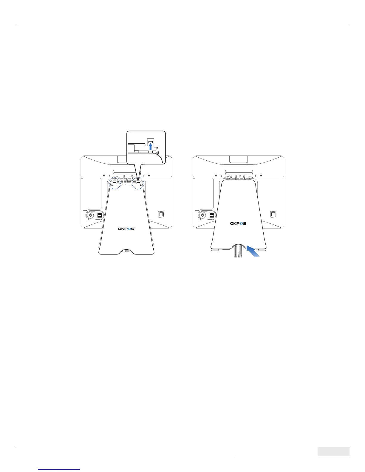 Align the two latch pins on the upper side of the cover with the stand latch holes, and press the