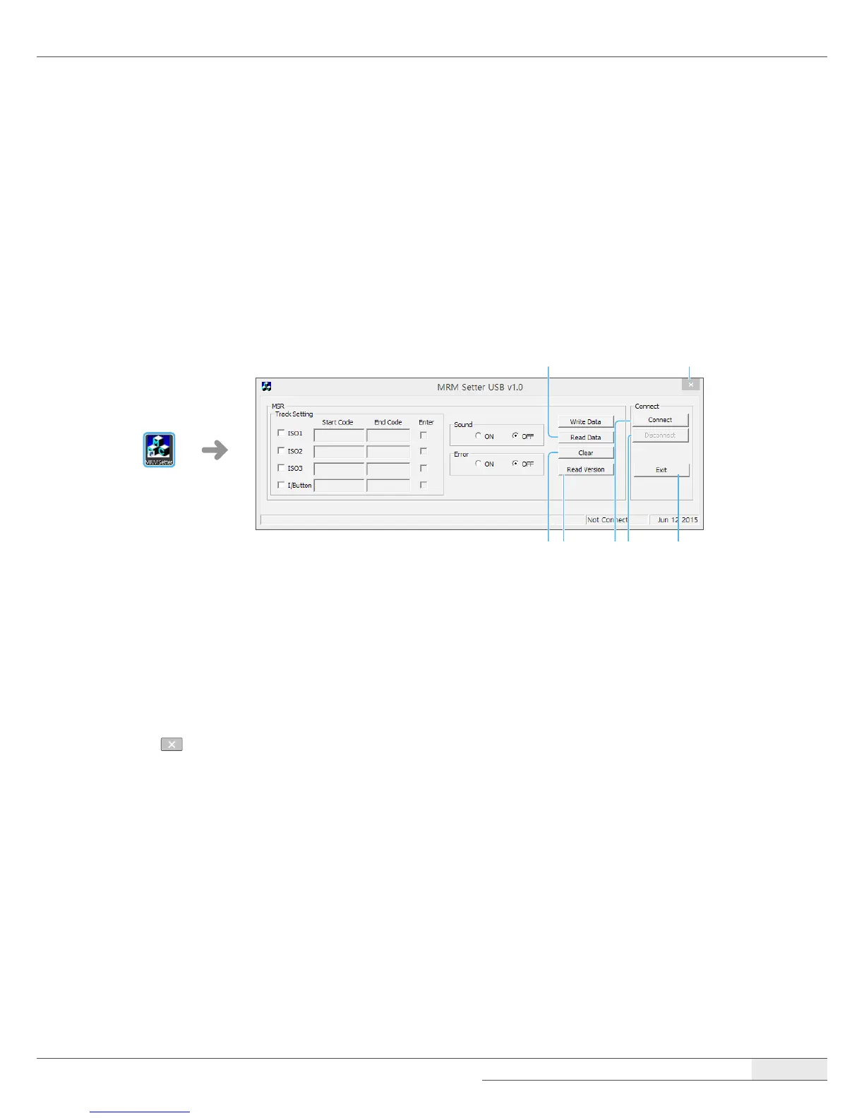 After connecting the card reader, run the MRMSetter program to setup the card reader.