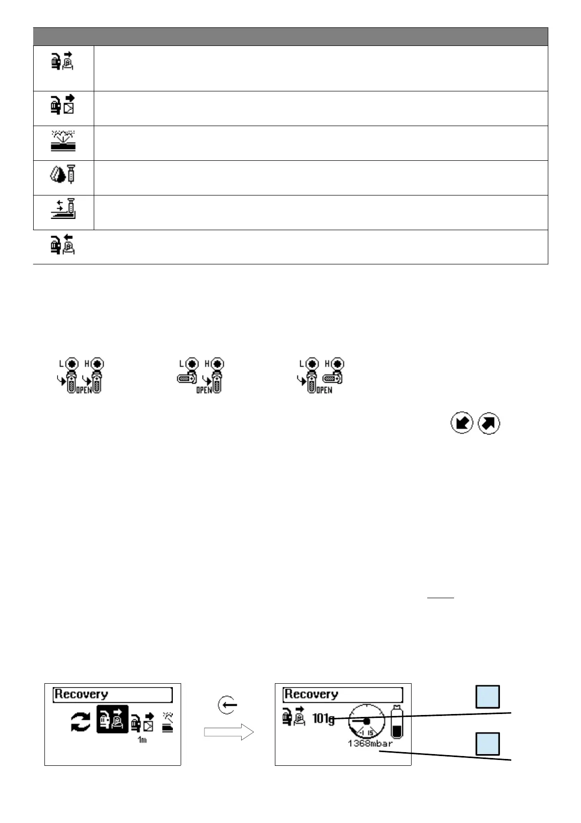 By selecting RECOVERY and pressing ENTER the unit carries out the refrigerant recovery from the A/C