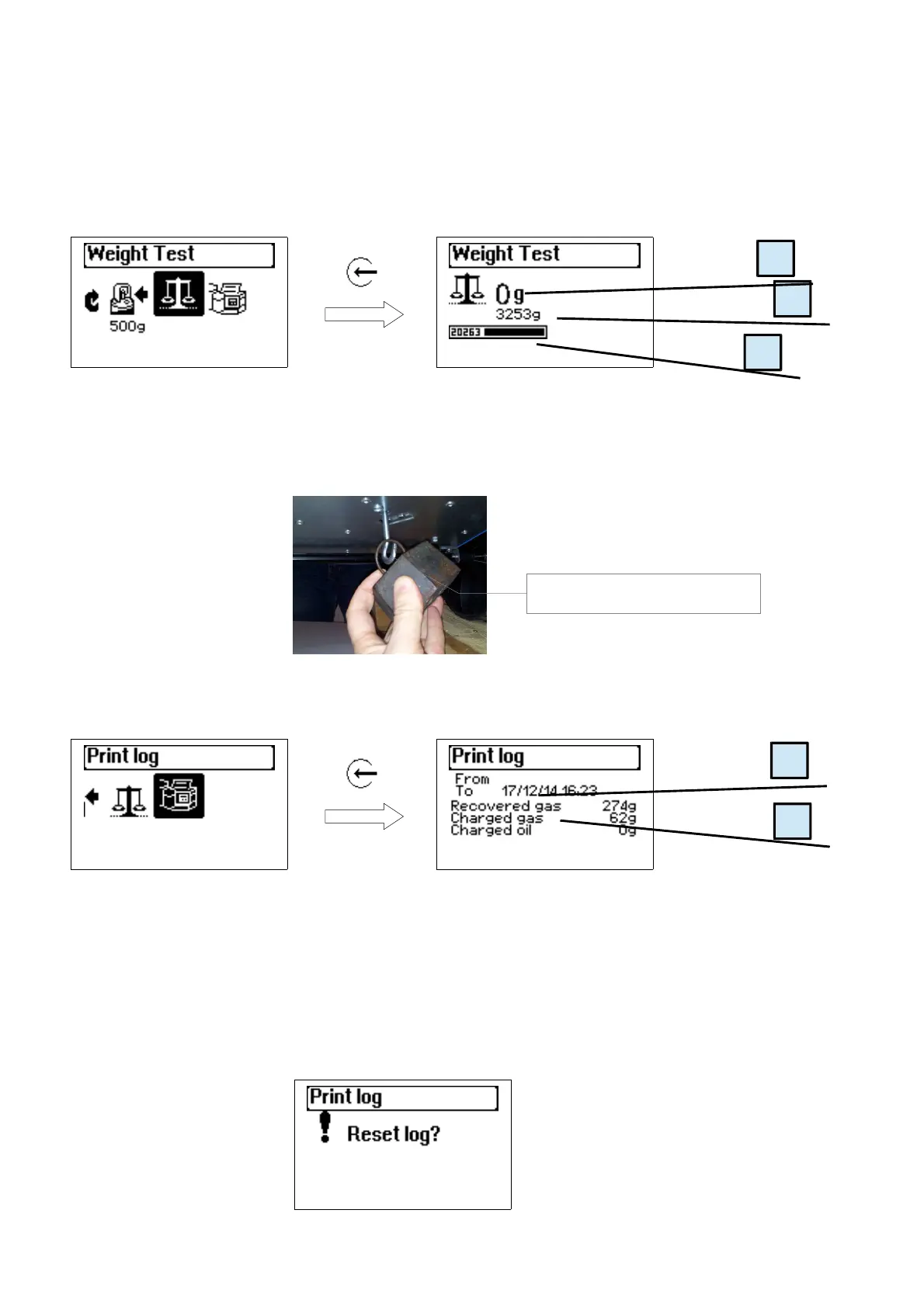 By selecting LOAD CELL TEST you may test the current accuracy of balance of the gas tank. The unit