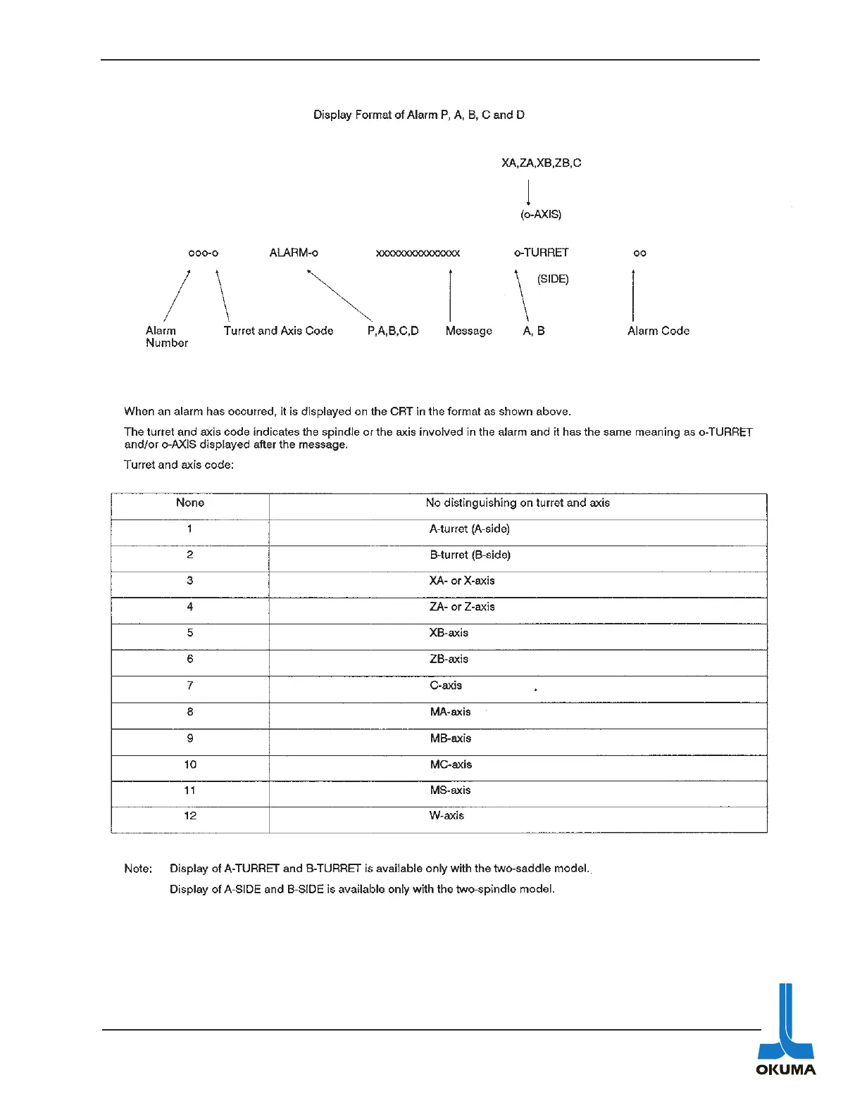 Okuma OSP 5000 - Display Format of Alarm P, A, B, C and D