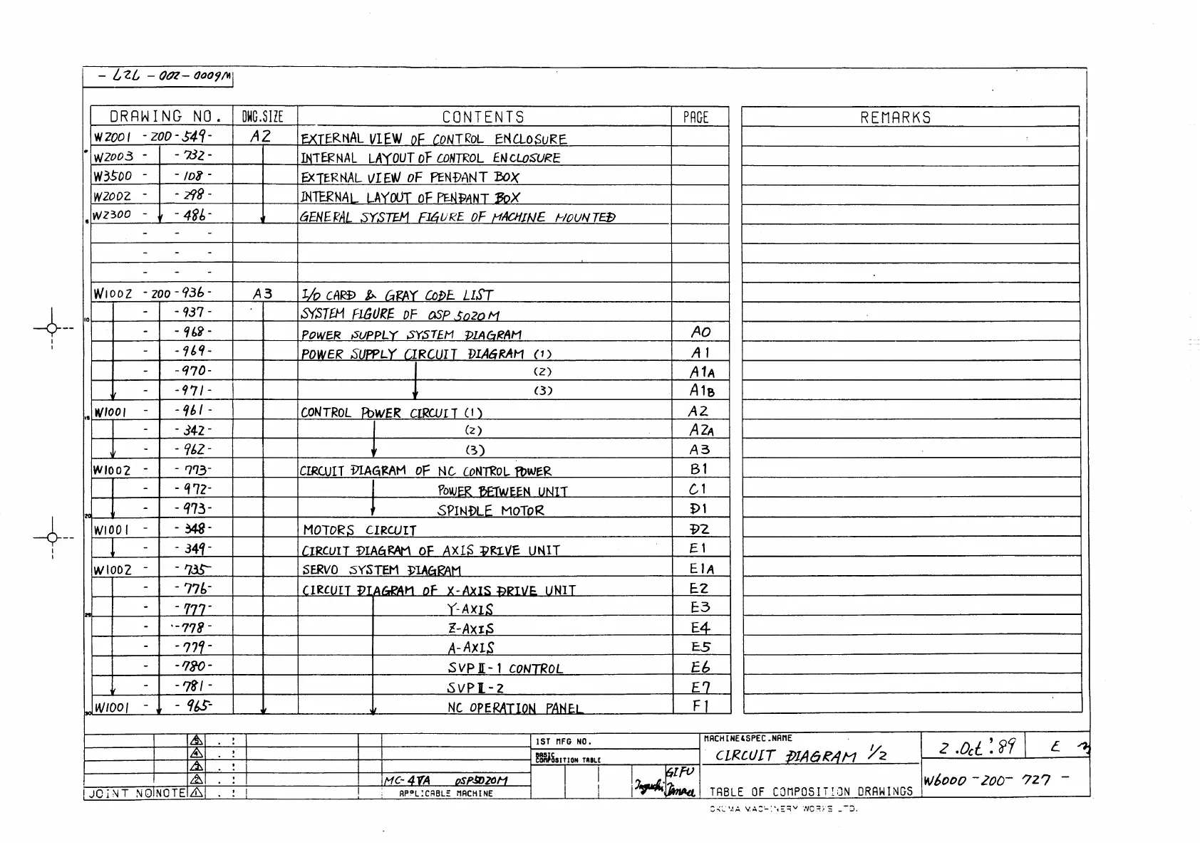 Okuma OSP 5000 - Table of Composition Drawings