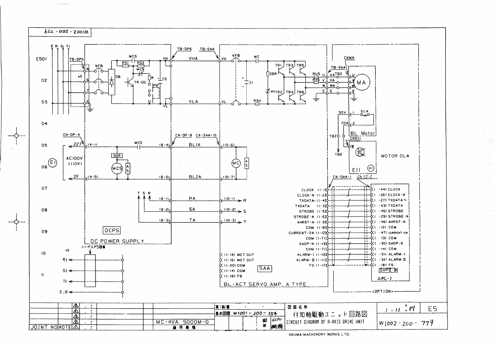 Okuma OSP 5000 - Circuit Diagram of A-Axis Drive Unit