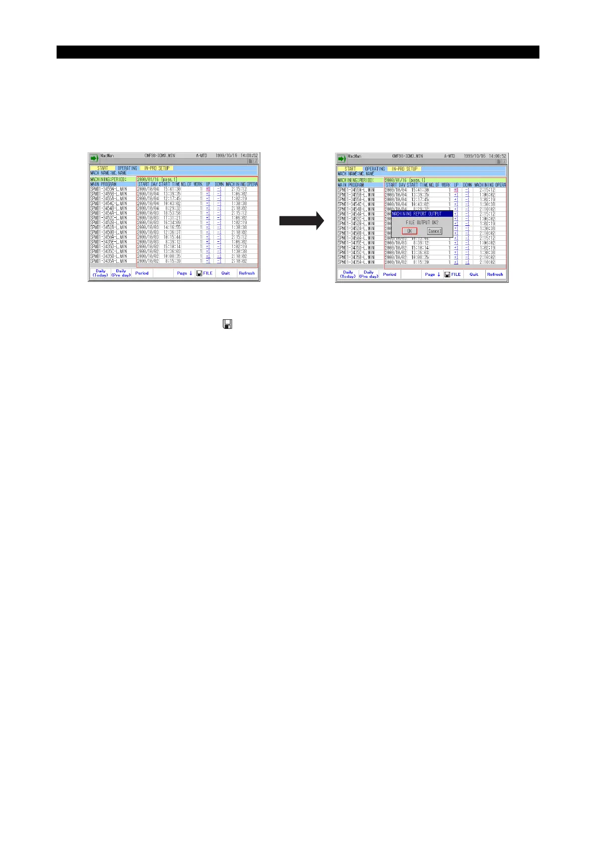 (2) The machining report displayed on the screen can be output to the floppy disk by simply press-