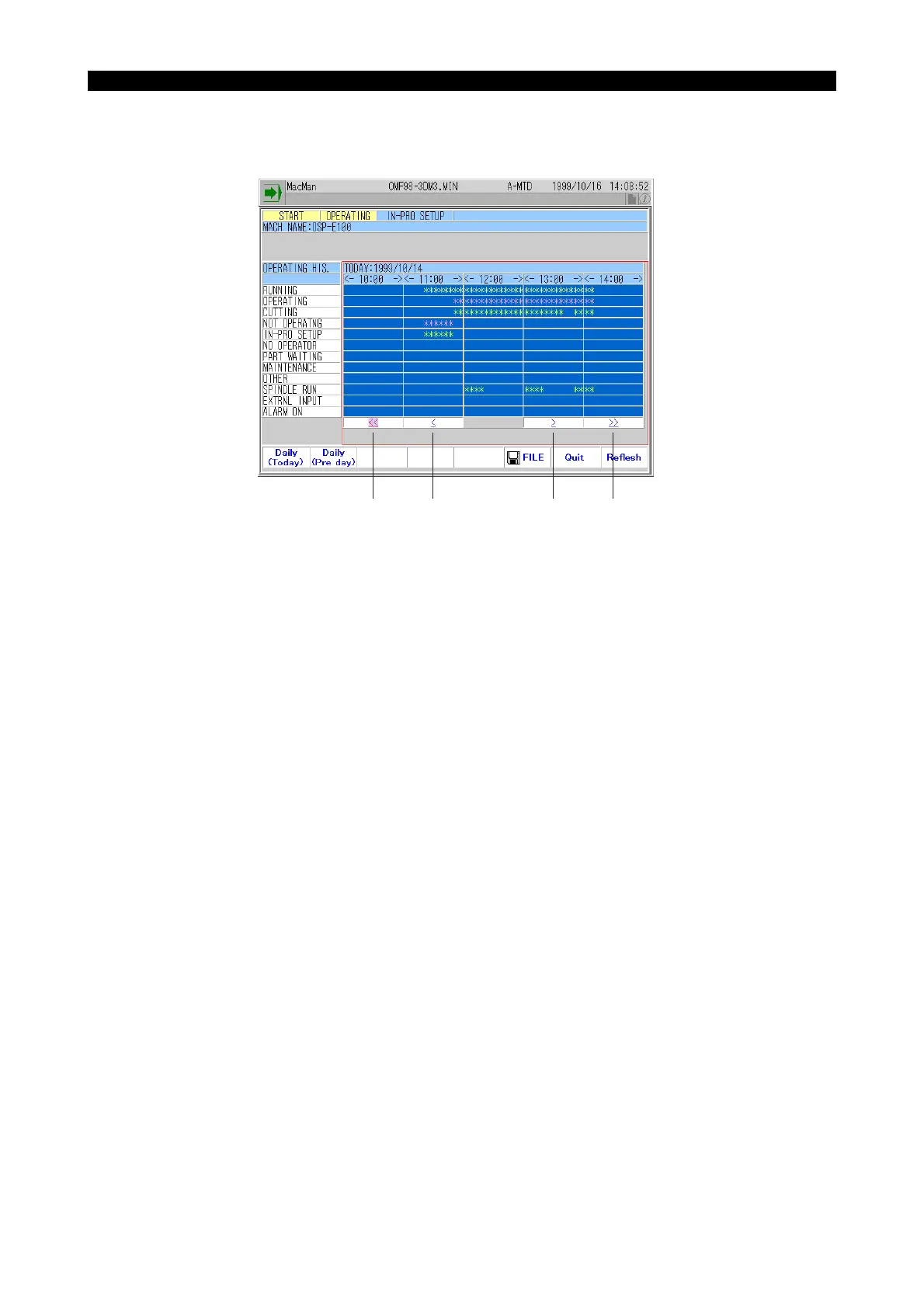 (2) A screen shows the operating history for five hours. To display the history before or after the