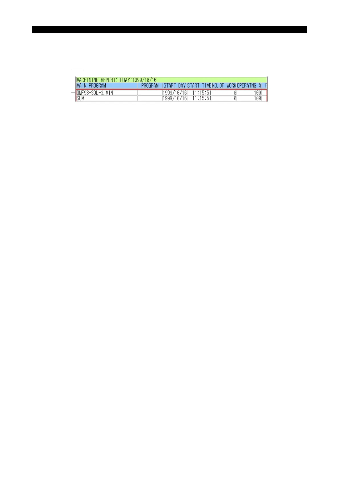 (1) Recent machining report is displayed.(up to 16 main programs)