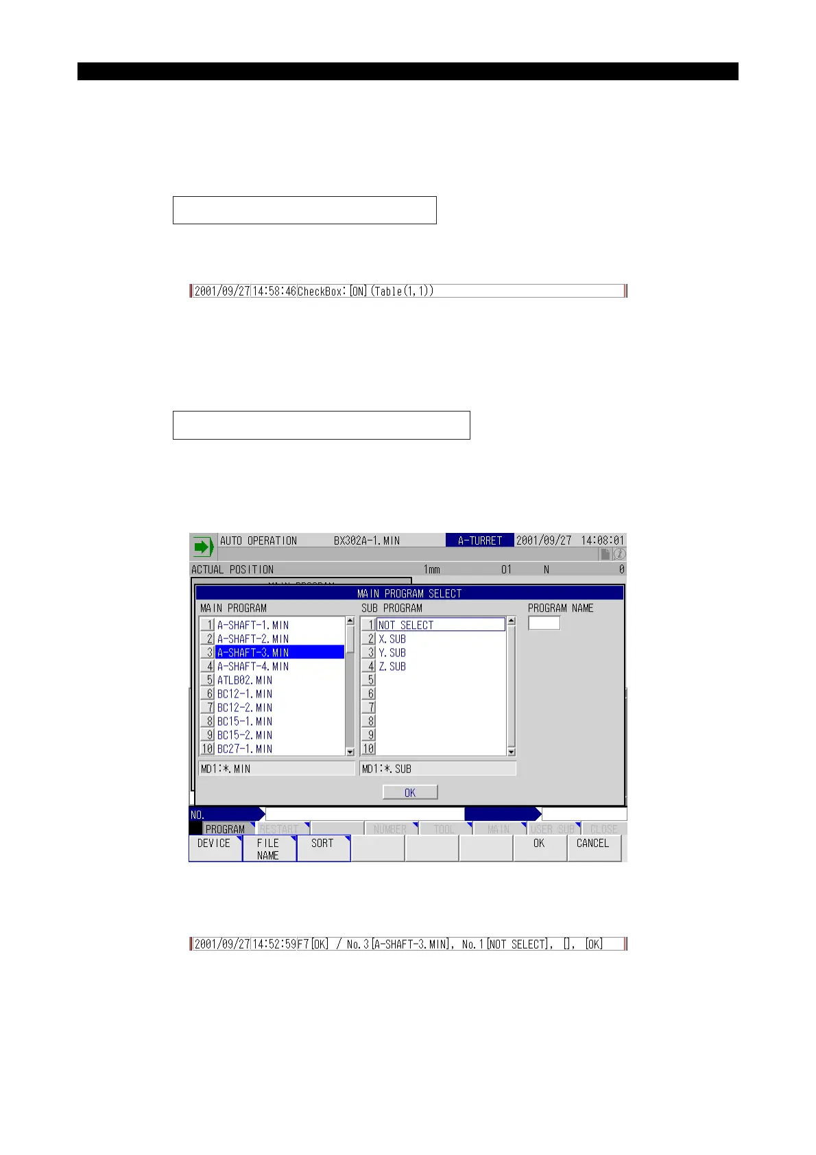 If, for example, you turned on a CheckBox, the operation record is displayed as illustrated