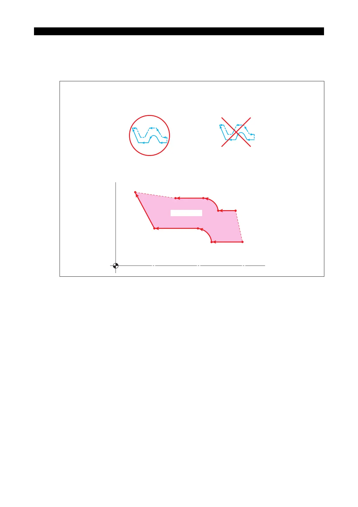 2) The blank material shape must be defined in the same direction as the finish contour is defined.