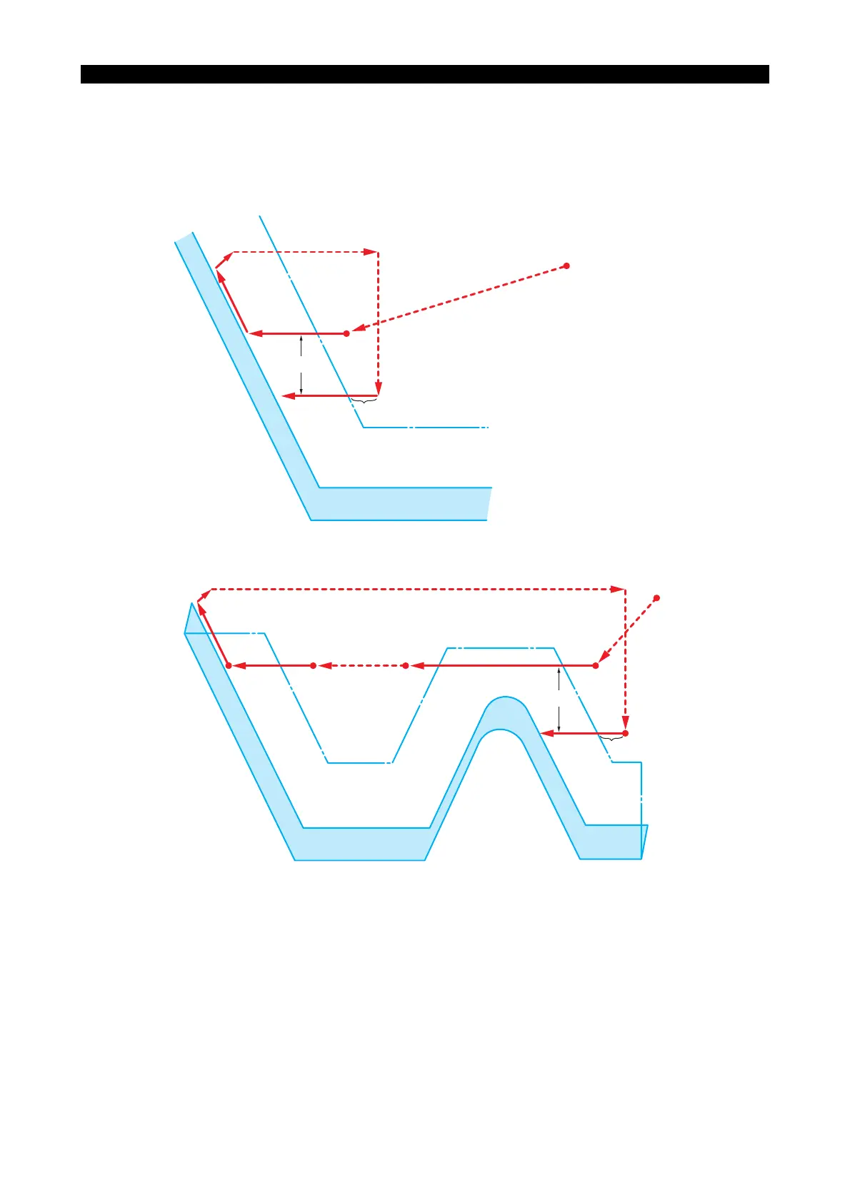 (8) This completes the first rough turning cycle. The Z-axis returns to the next infeed point at the