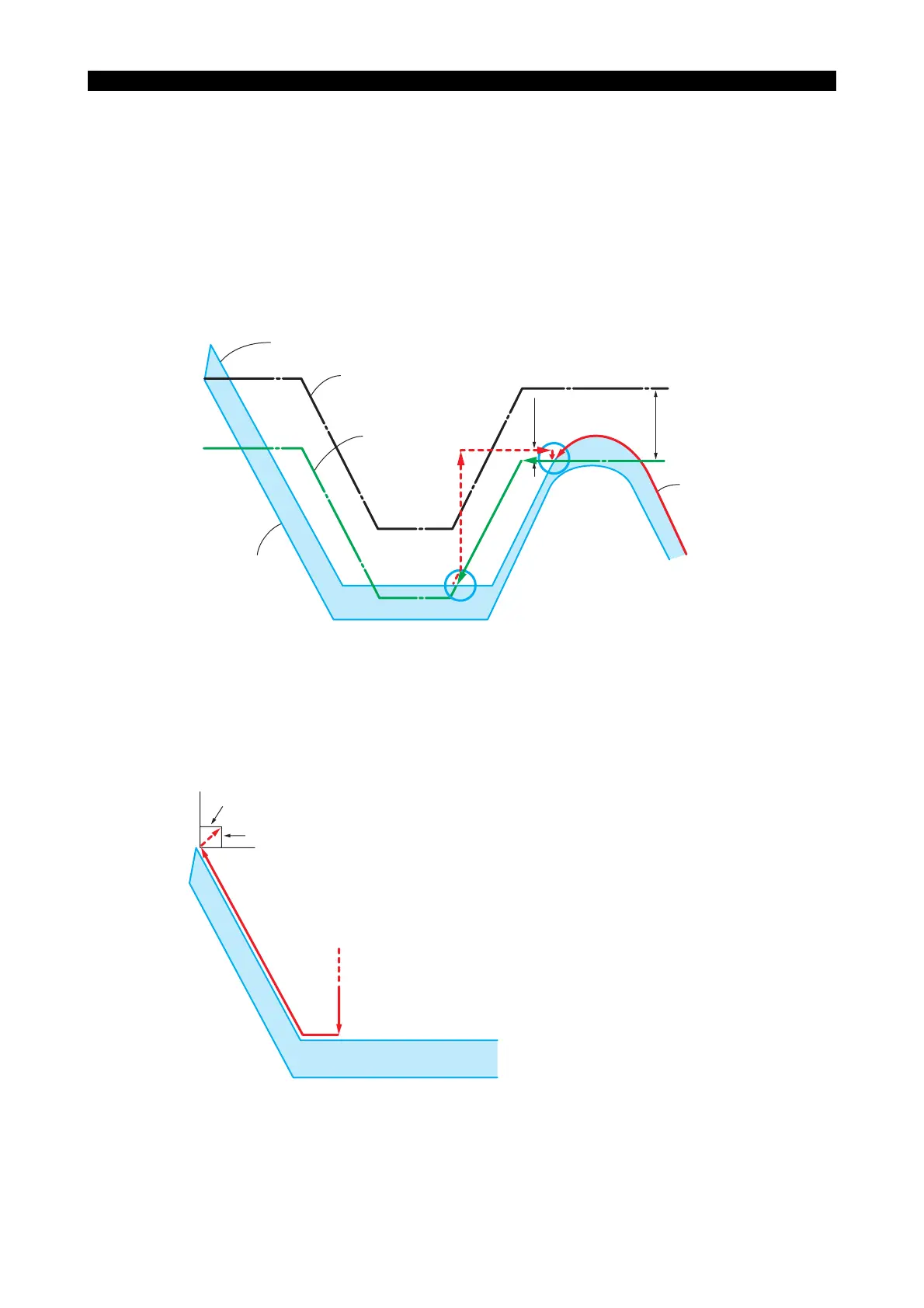 contour (or final rough turning contour) is cut. Then, the cutting tool is relieved by 0.1 mm