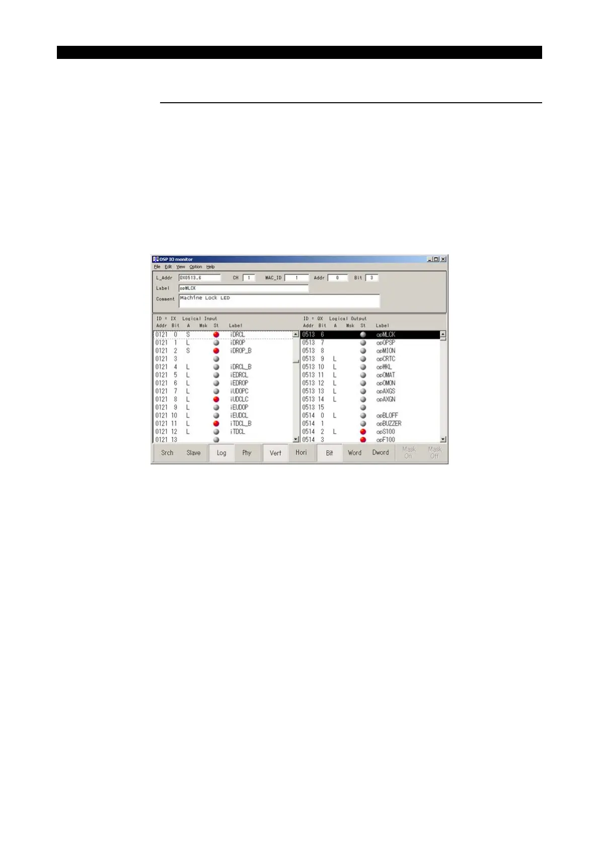 2 Search for "opMLCK" with the I/O monitor in the same manner as in reading an input status.