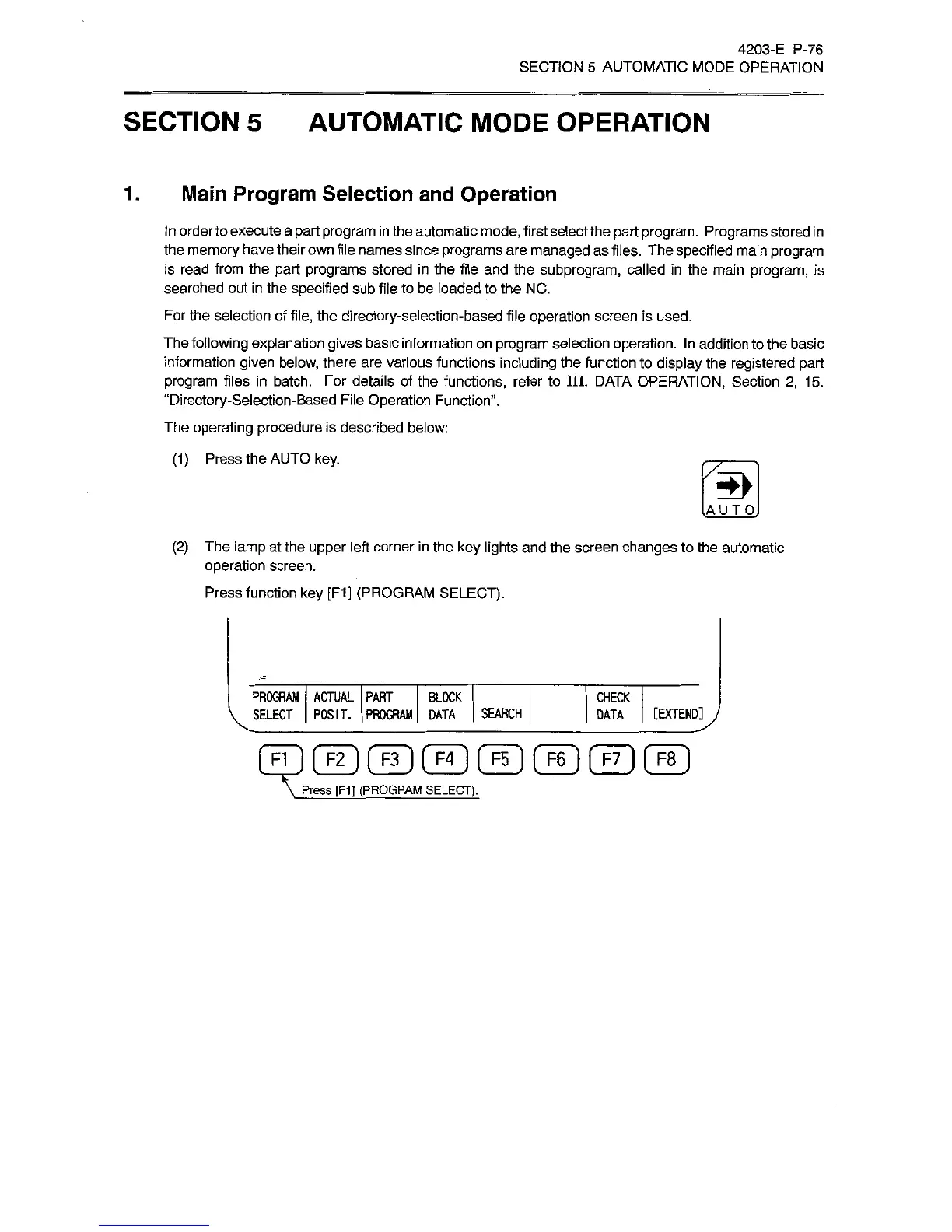 Okuma OSP-U100M - SECTION 5 AUTOMATIC MODE OPERATION; Main Program Selection and Operation