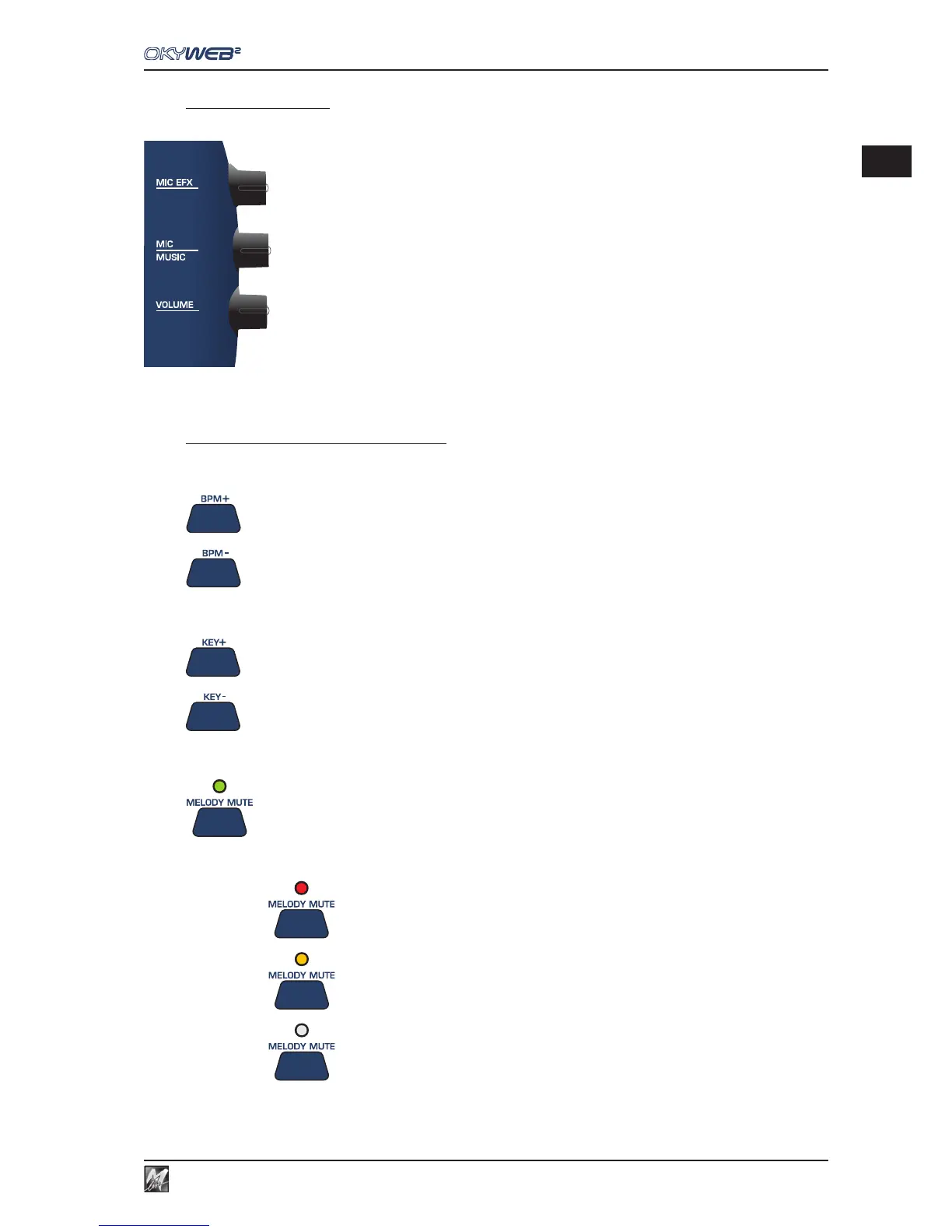 The MELODY MUTE LED shows the state of the function and hence the volume of the melody track: