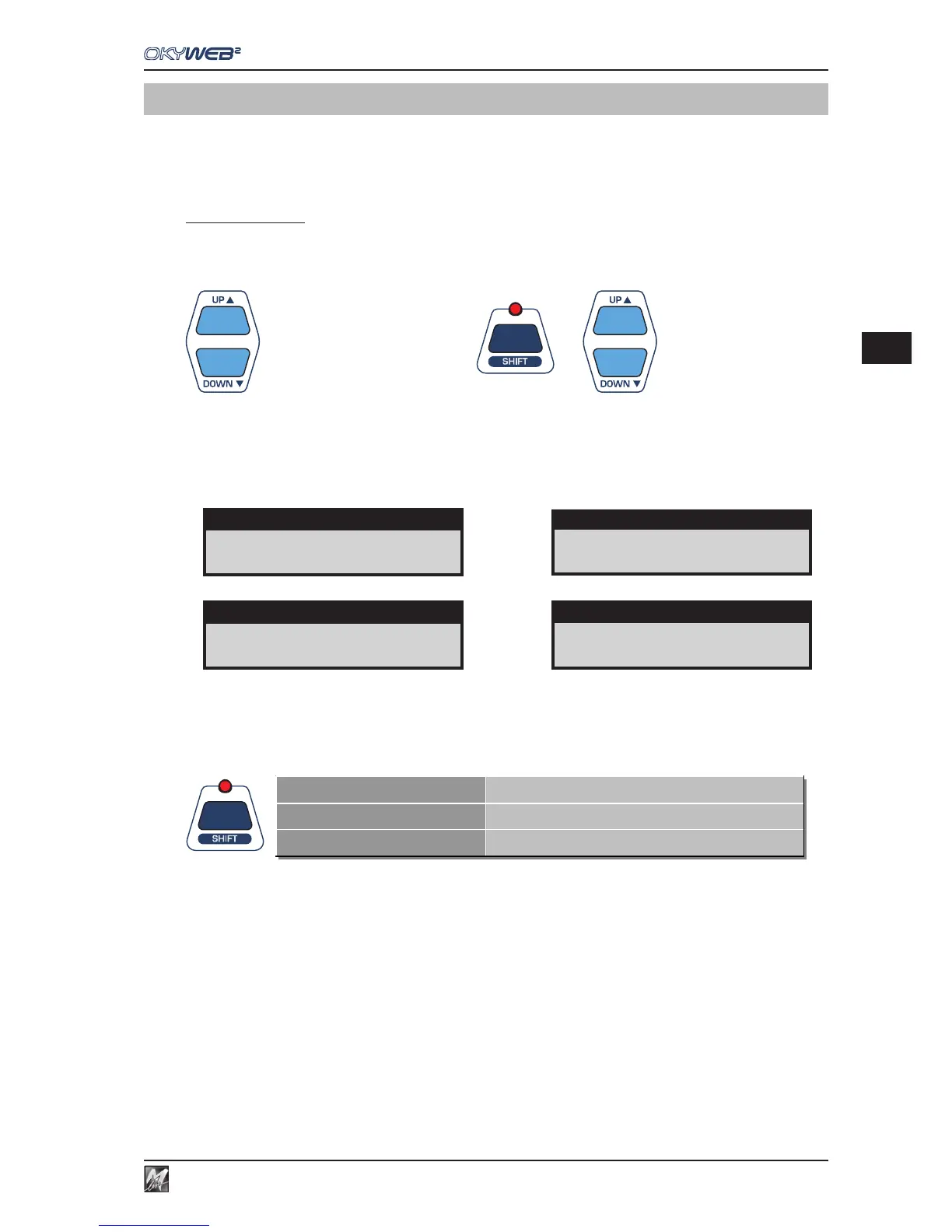 The SHIFT key has three modes, associated to the selection of the three different OkyWeb2 search functions,