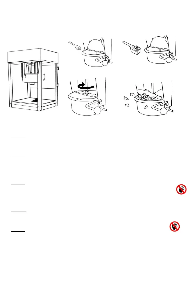 STEP 5 Rotate the kettle arm to dump popcorn kettle. CAUTION! KETTLE