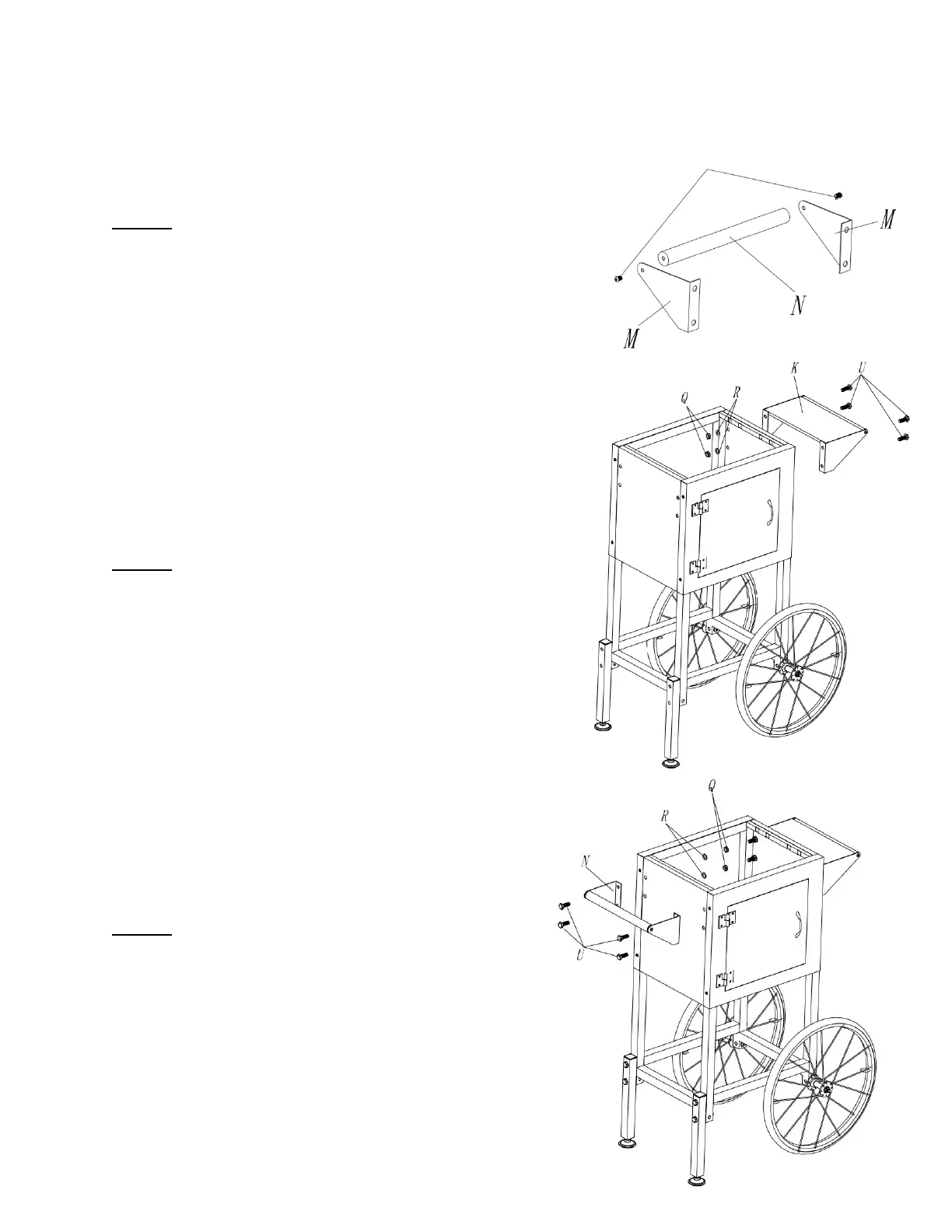 Using four BOLTS (U), WASHERS (R) and NUTS (Q), install