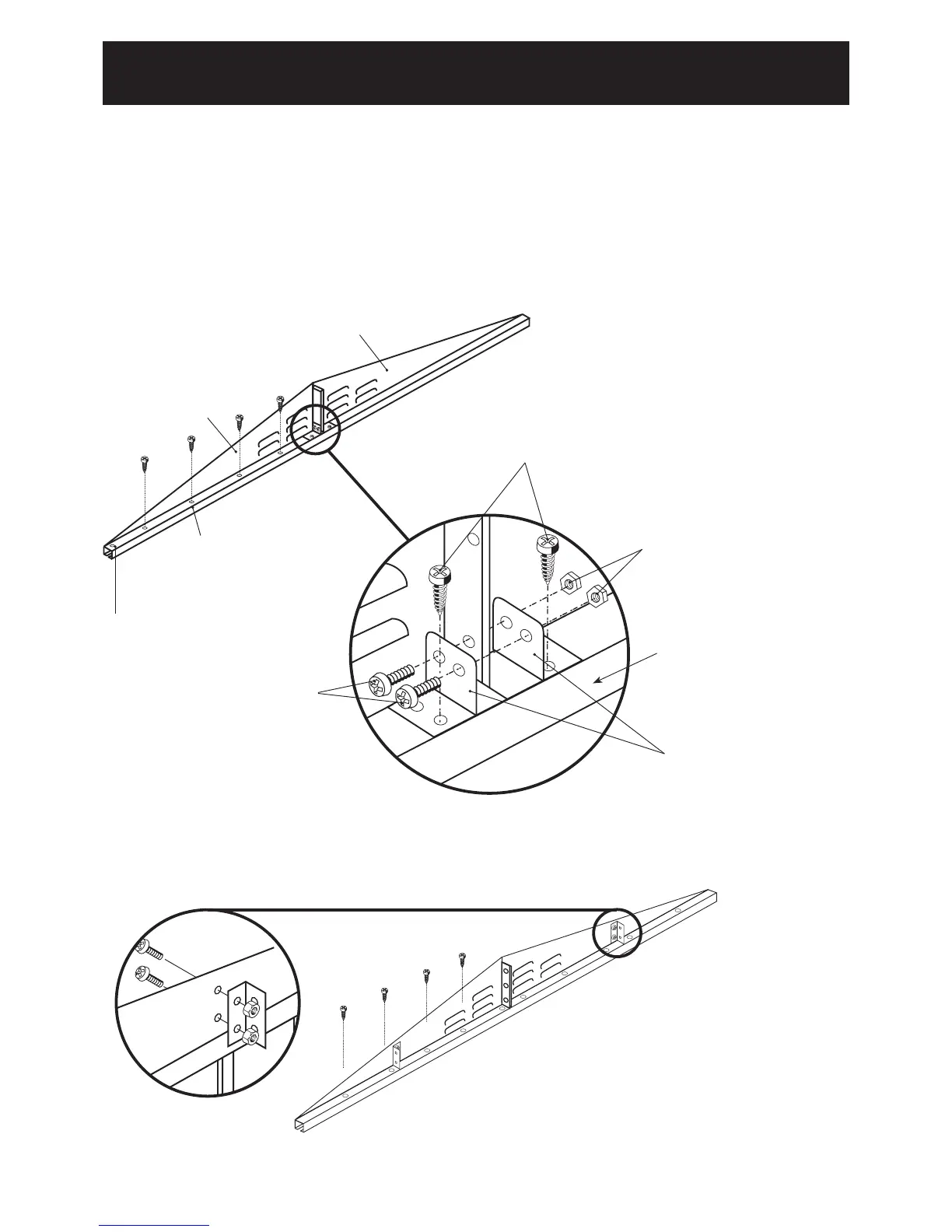 Fix Gables 'O1' and 'N1' to the Top Rail 'I1' from the centre towards each end with screws 'X12'.