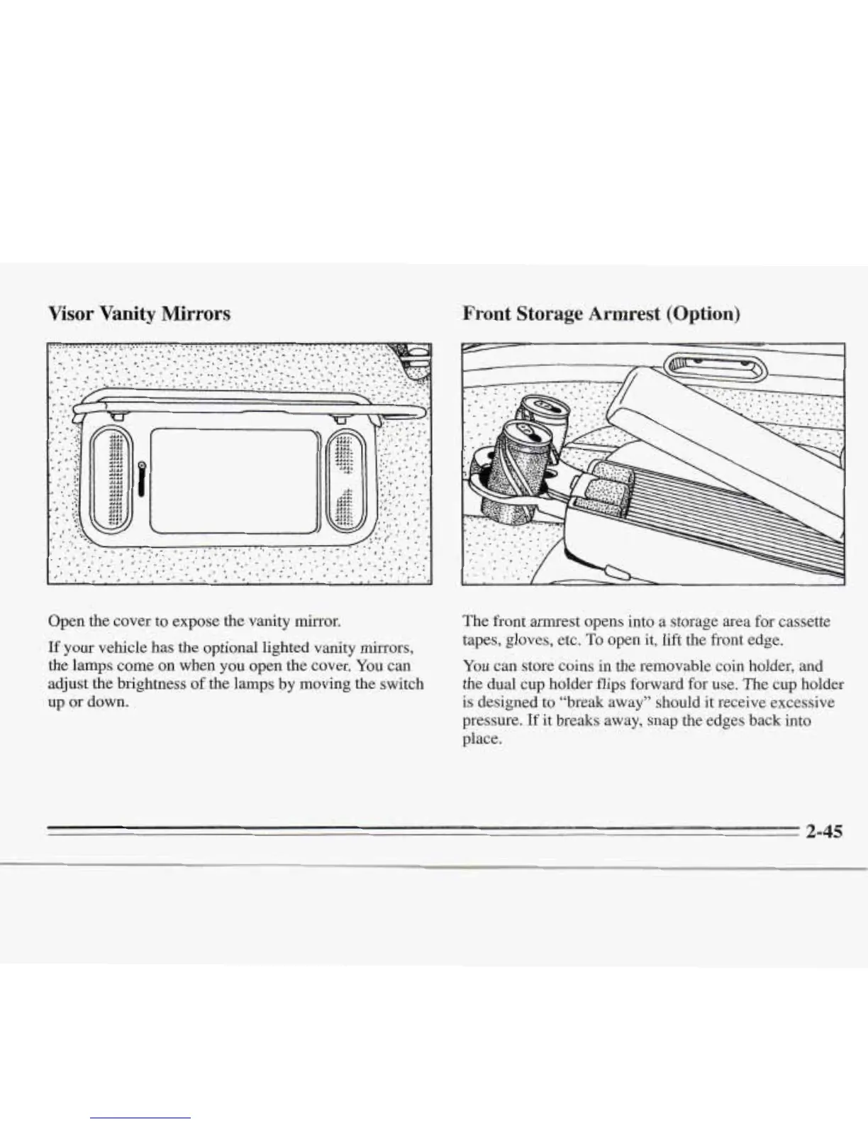 Visor Vanity Mirrors Front Storage Armrest (Option)