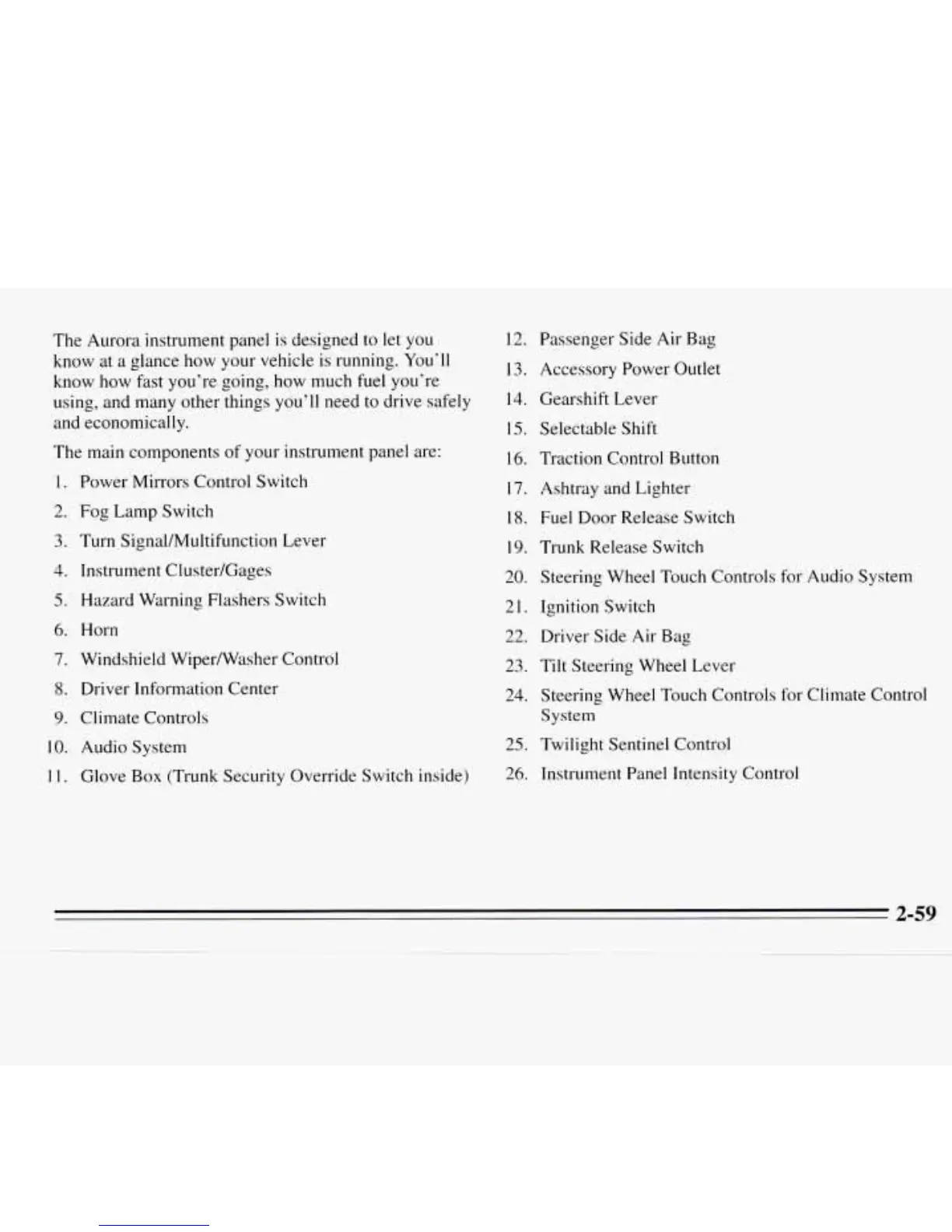 The Aurora instrument panel is designed to let