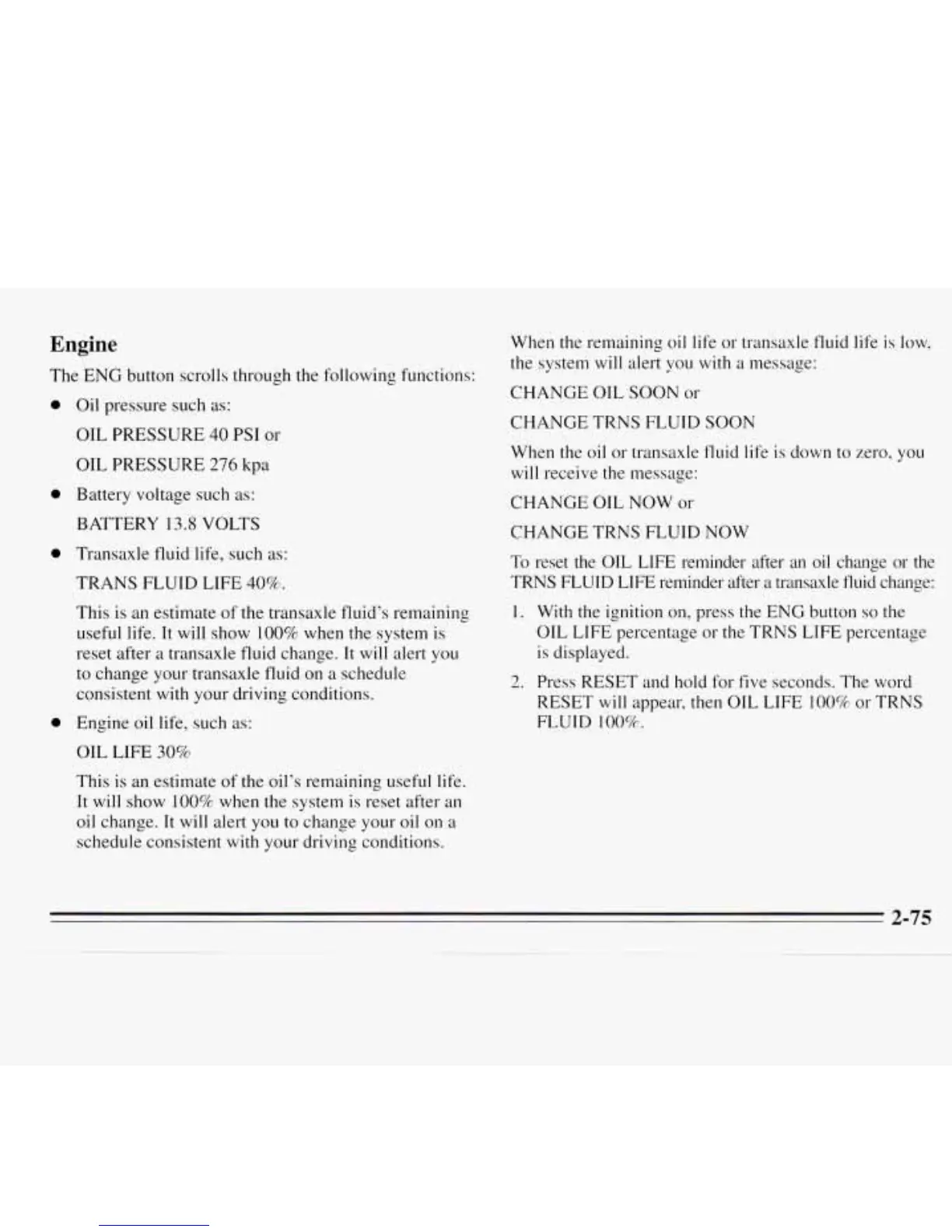 TRNS FLUID LIFE reminder after a transaxle fluid change: