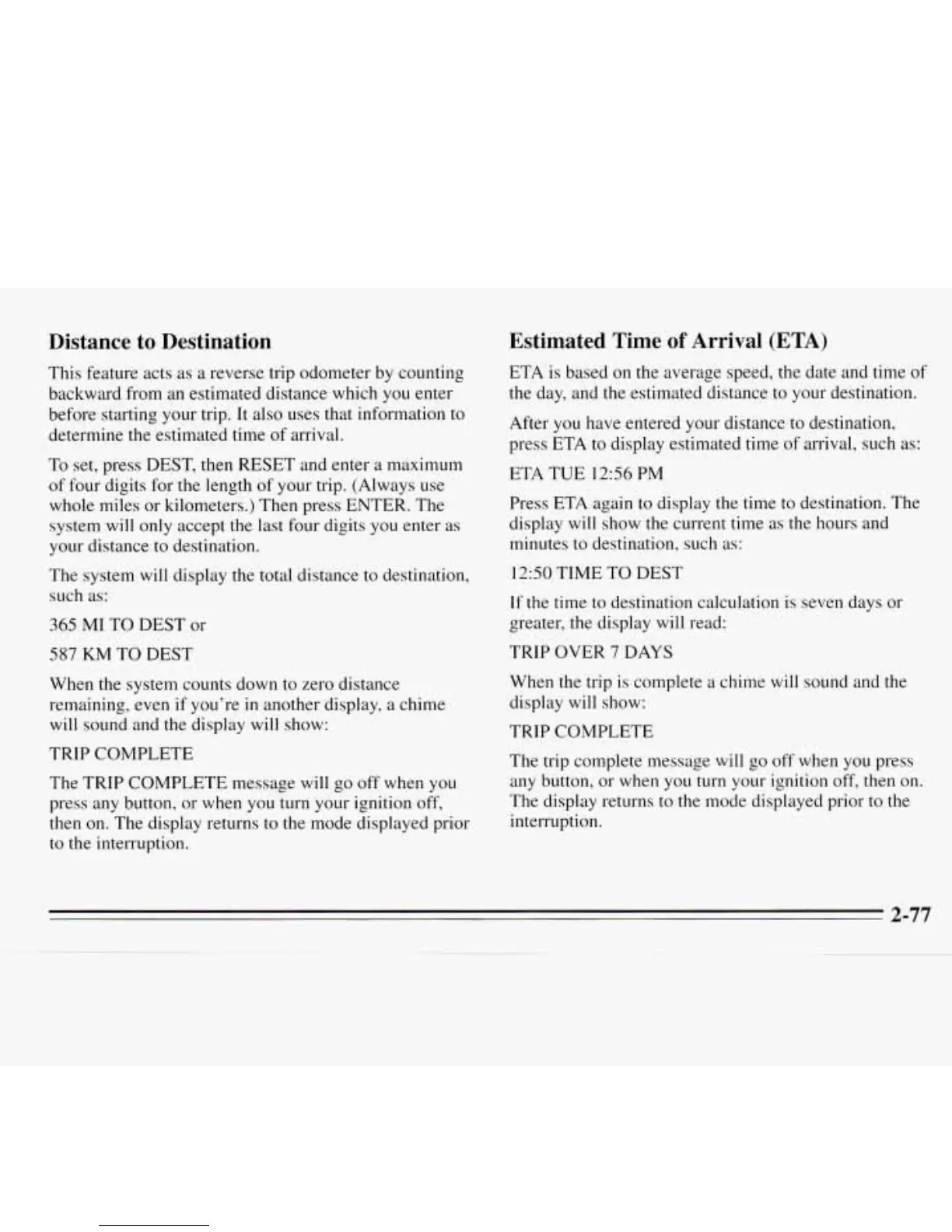 When the trip is complete a chime will sound and the