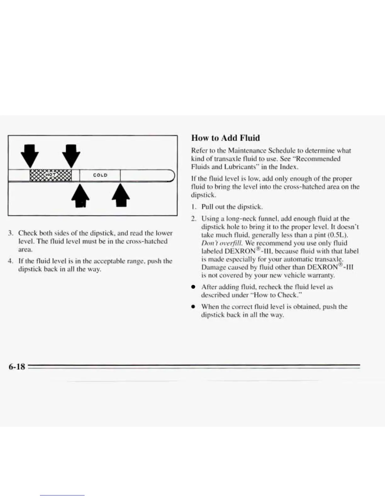 fluid to bring the level into the cross-hatched area on