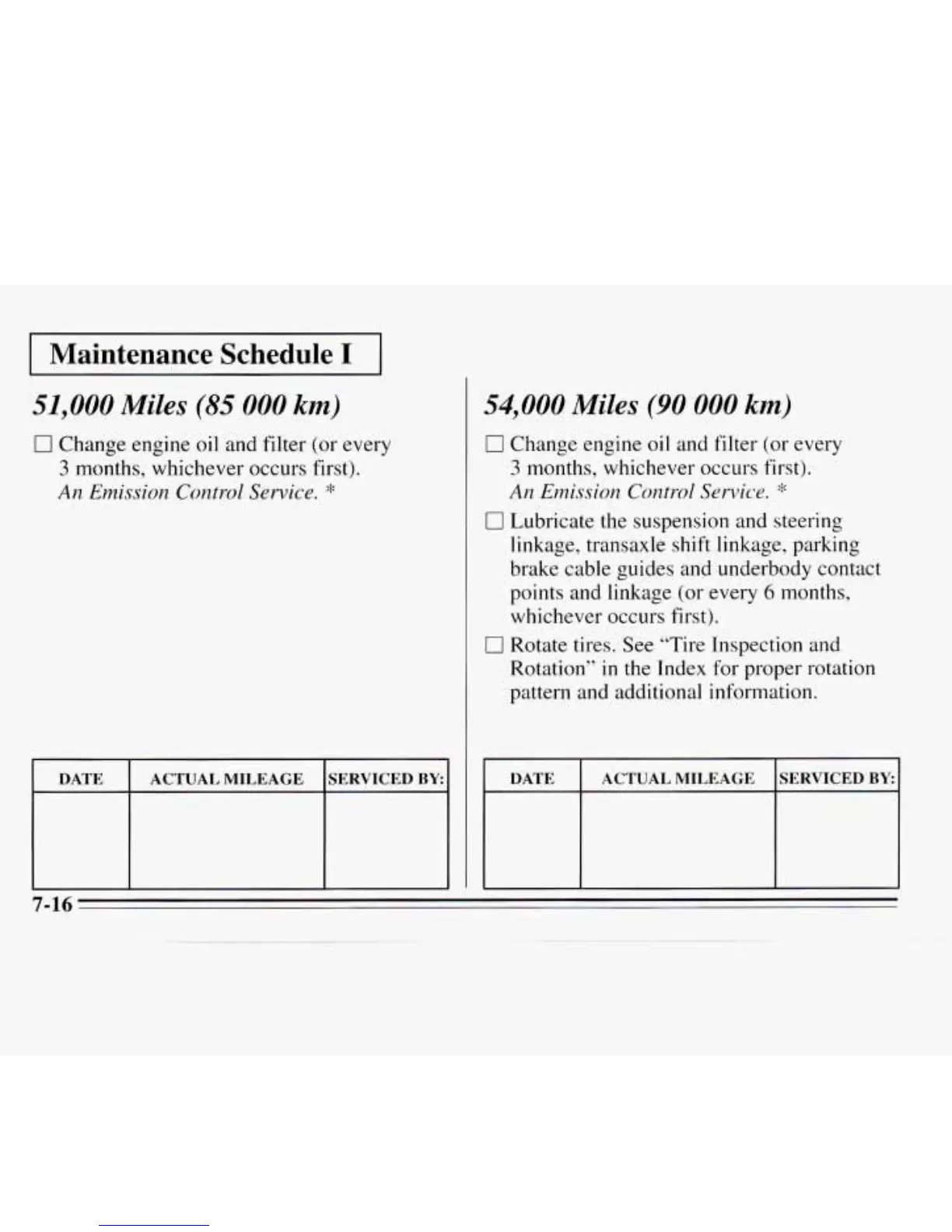 DATE ACTUAL MILEAGE SERVICED