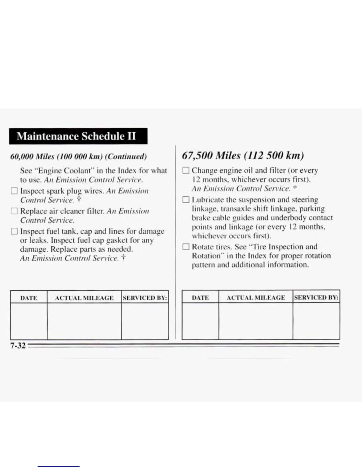 DATE ACTUAL MILEAGE