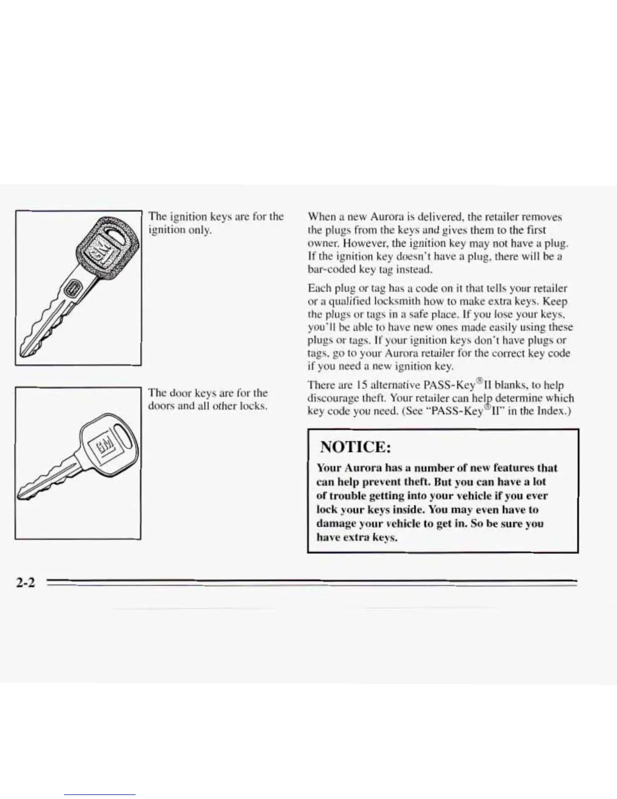 tags, go to your Aurora retailer for the correct key code