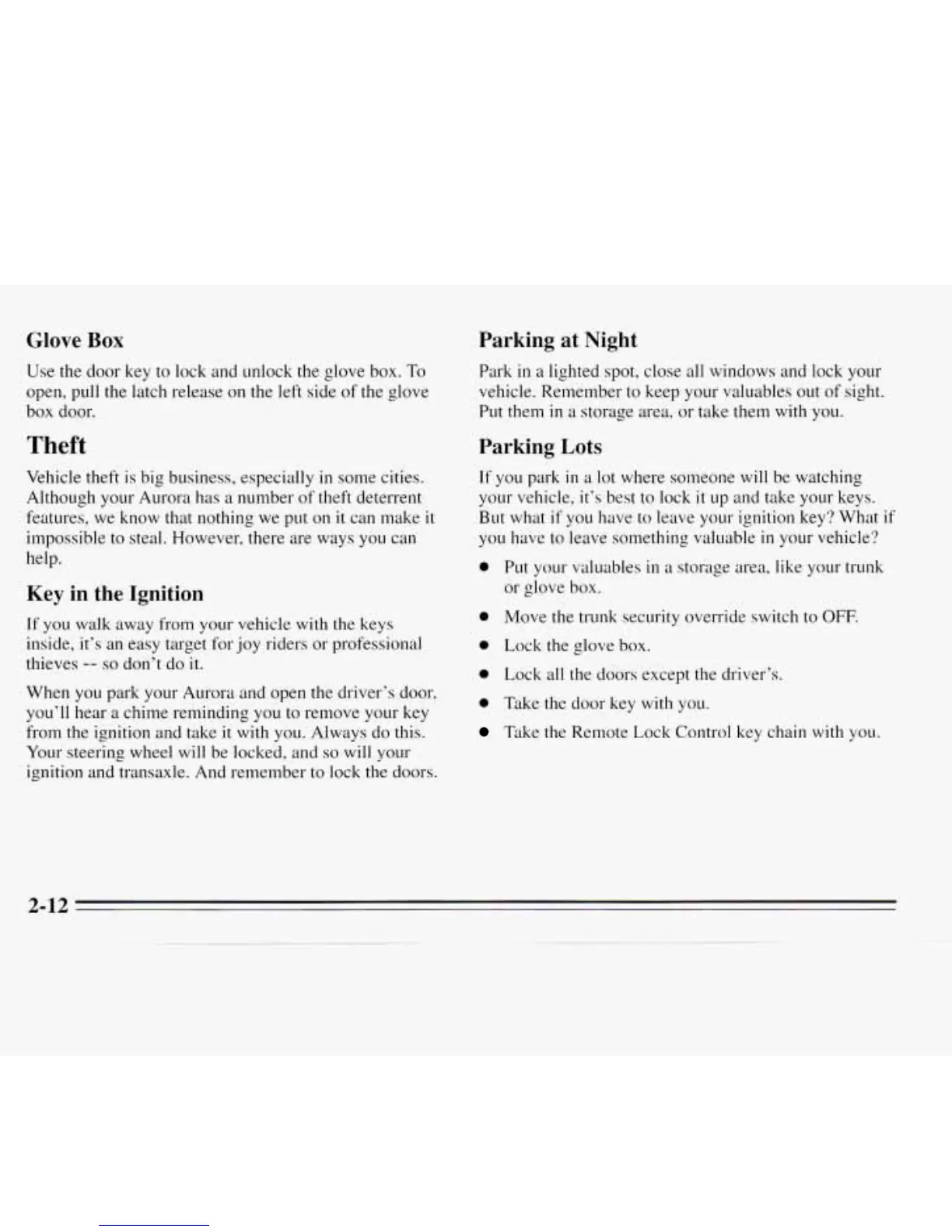 ignition and transaxle. And remember to lock the doors.