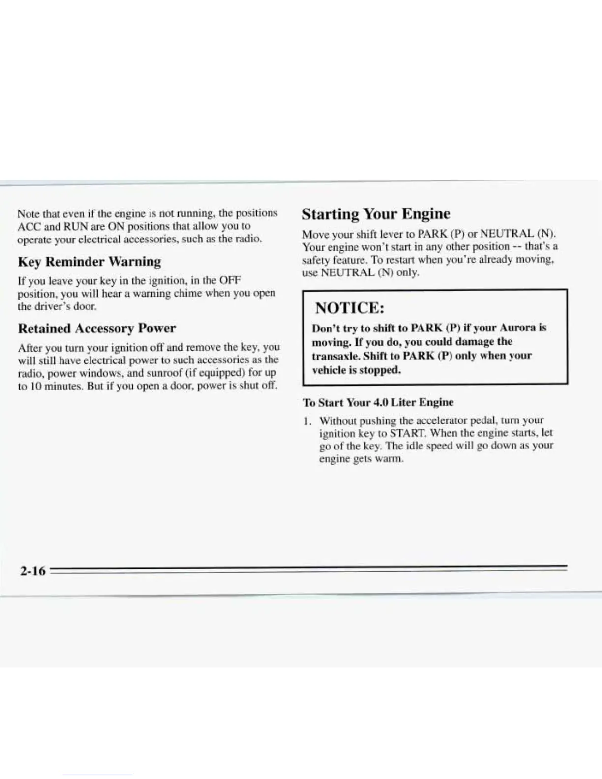 transaxle. Shift to PARK (P) only when your