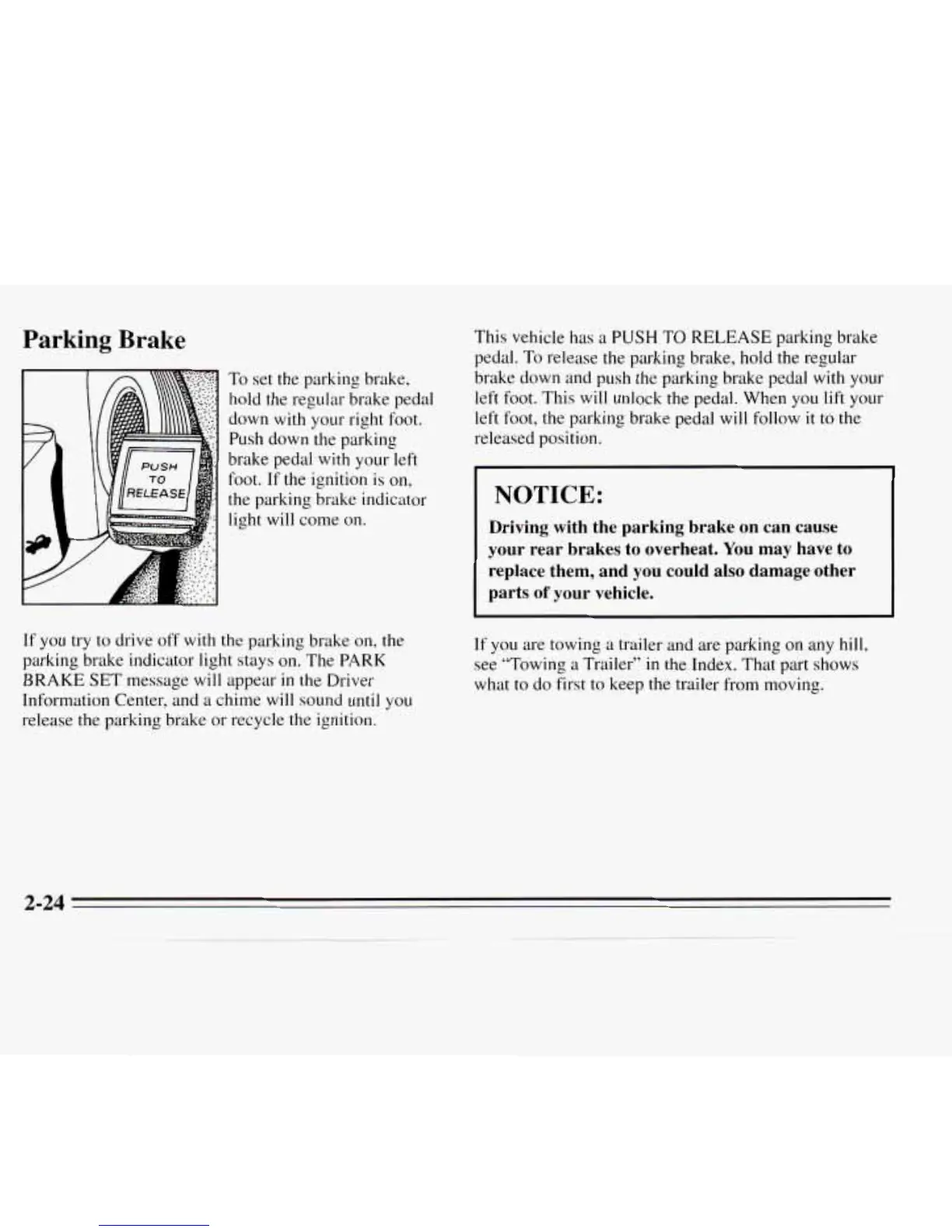 parking brake, hold the regular
