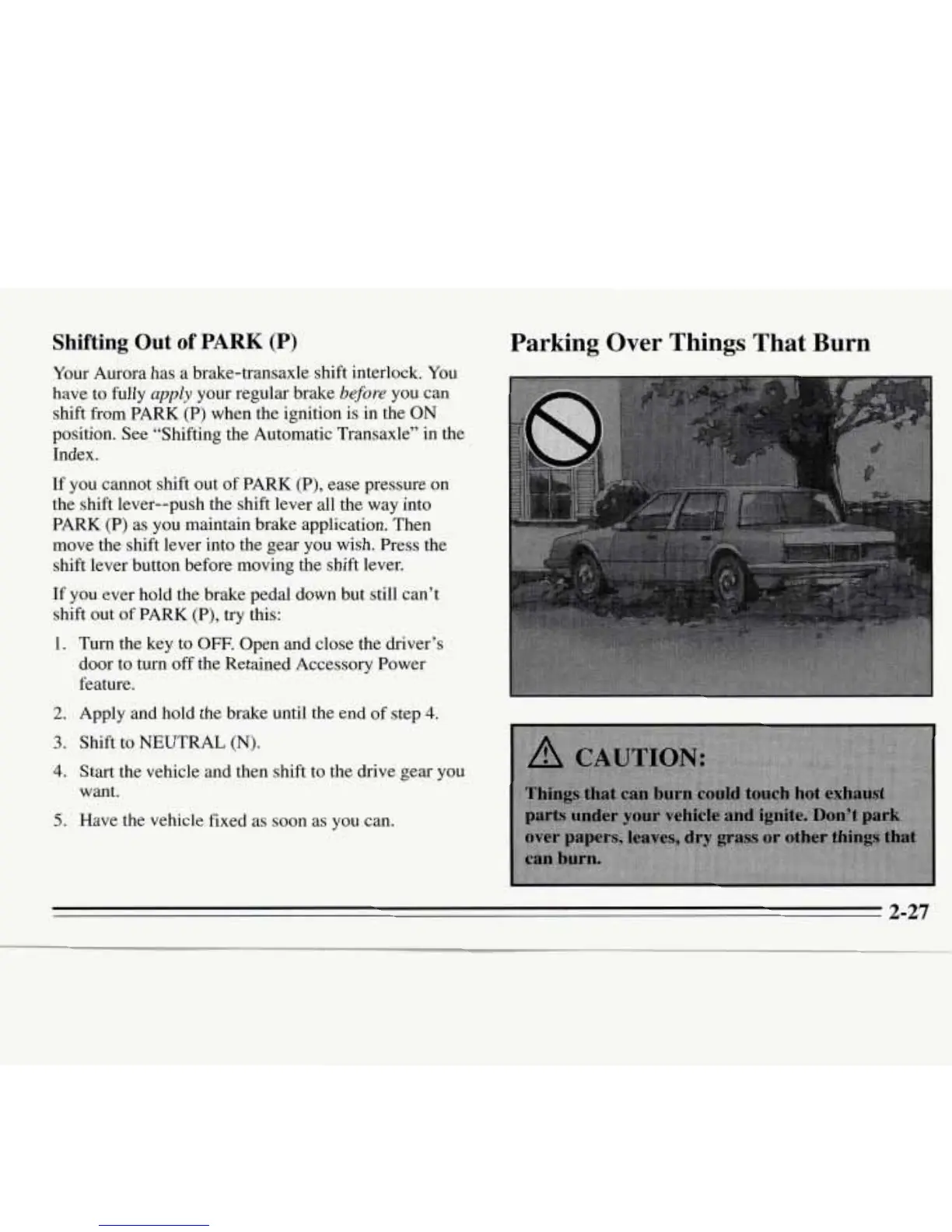 Your Aurora has a brake-transaxle shift interlock. You