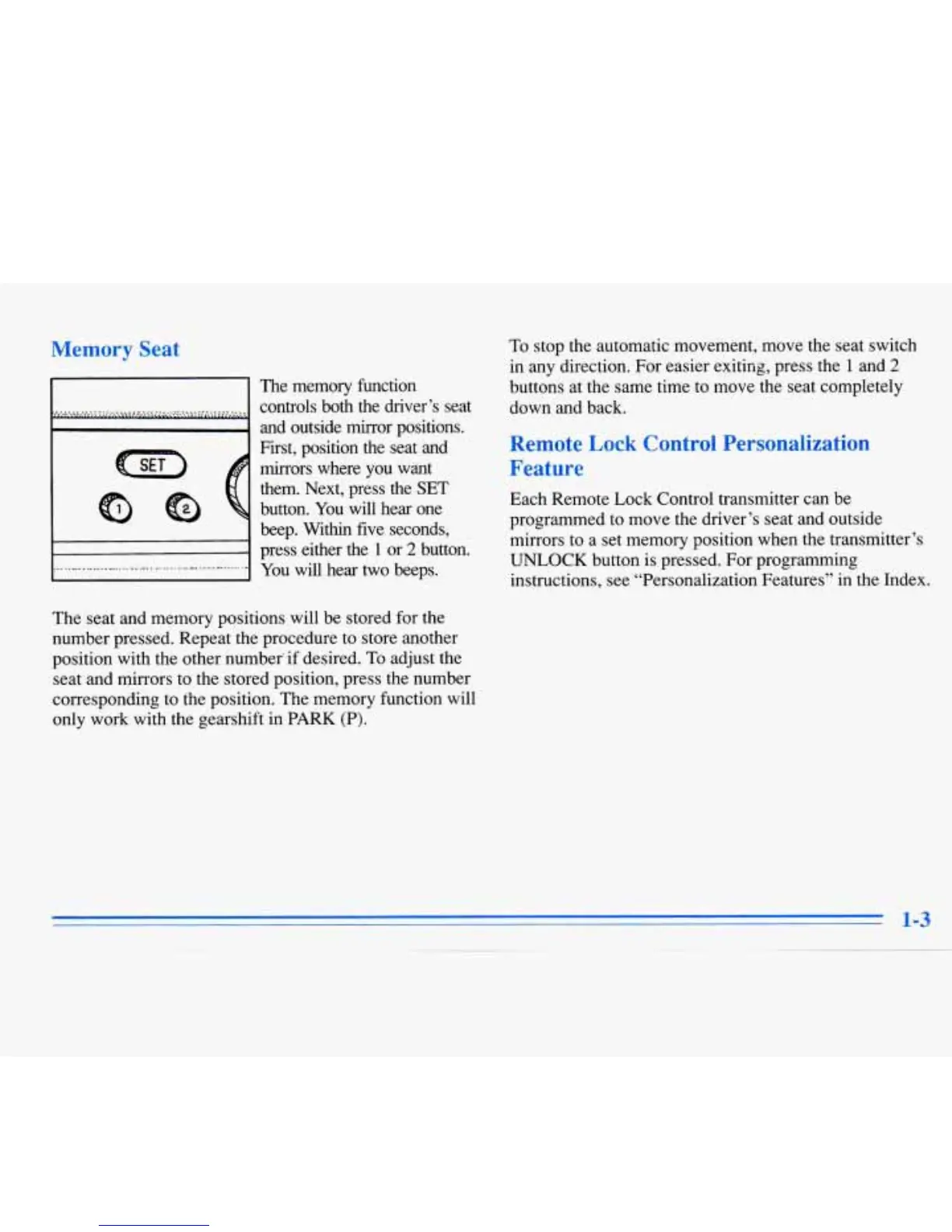 seat and mirrors to the stored position, press the number