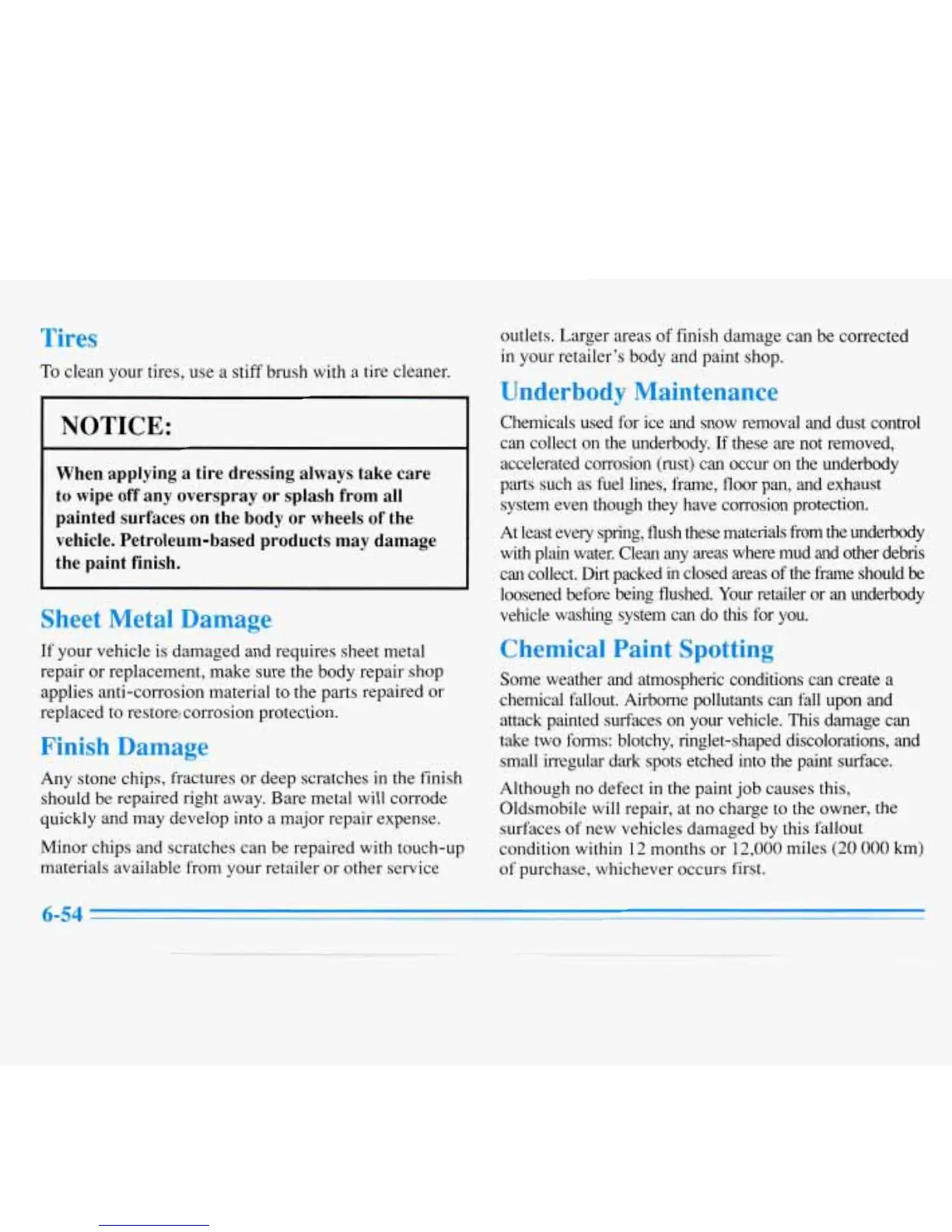accelerated corrosion (rust) can occur on the underbody