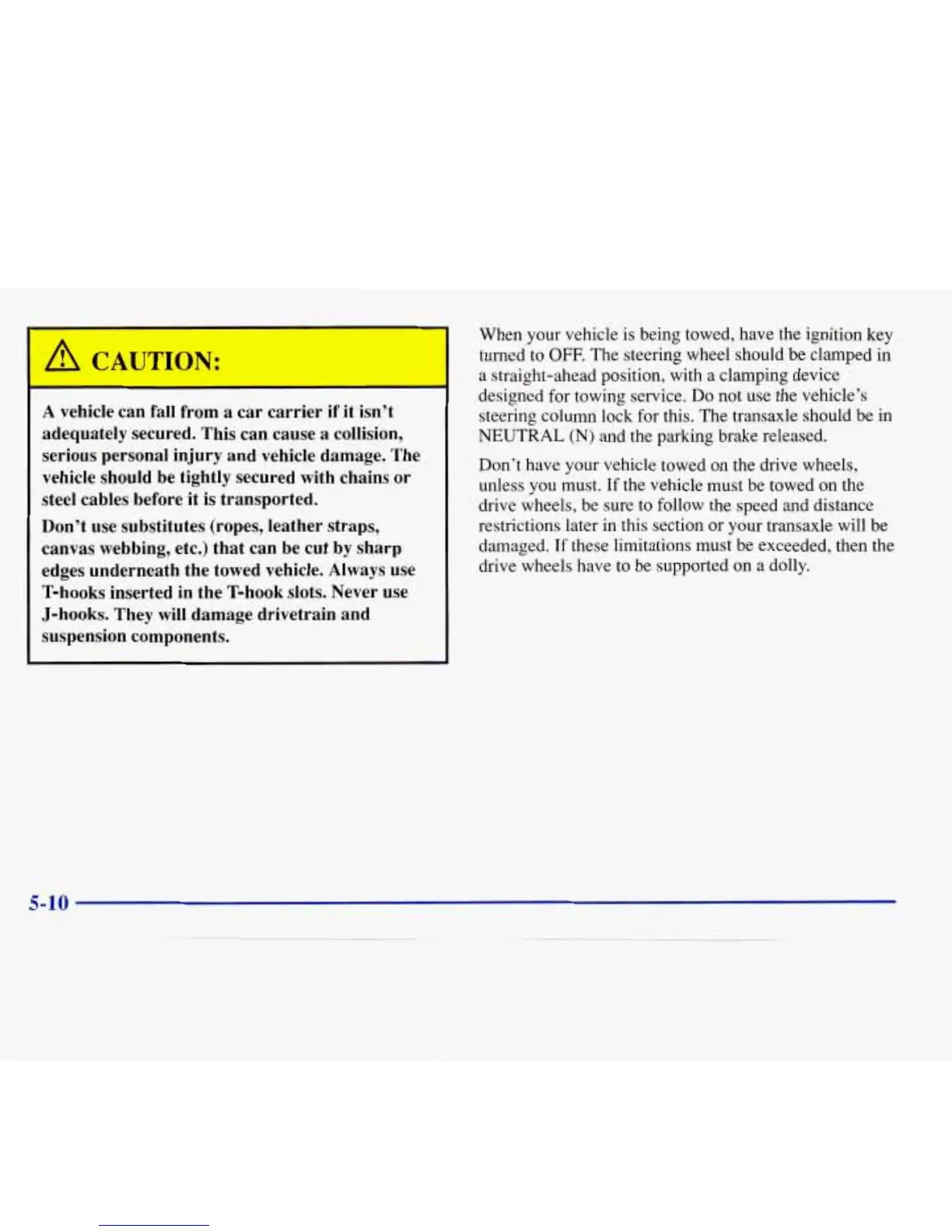 Don’t have your vehicle towed on the drive wheels,